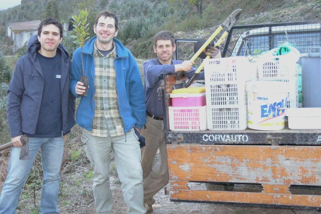 A área de trabalhos era aquele espaço de reconversão de eucaliptal da propriedade da Silvicaima, na qual já tinhamos plantado medronheiros e semeado sobreiros. O solo, difícil, delgado, e com muitas pedras, requeria uma busca cuidada dos locais mais apropriados. Além disso, esta era a parte mais invadida com Acacia longifolia, ainda com muitas plantas pequenas e fáceis de arrancar. Dois voluntários tiveram até a feliz ideia de arrancar acácias em torno dos medronheiros plantados e com elas fazer um “mulching” junto aos pés destes. É o que se chama transformar um “mal” num “bem”.