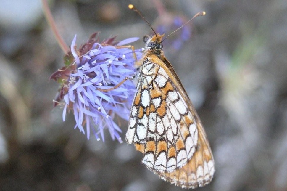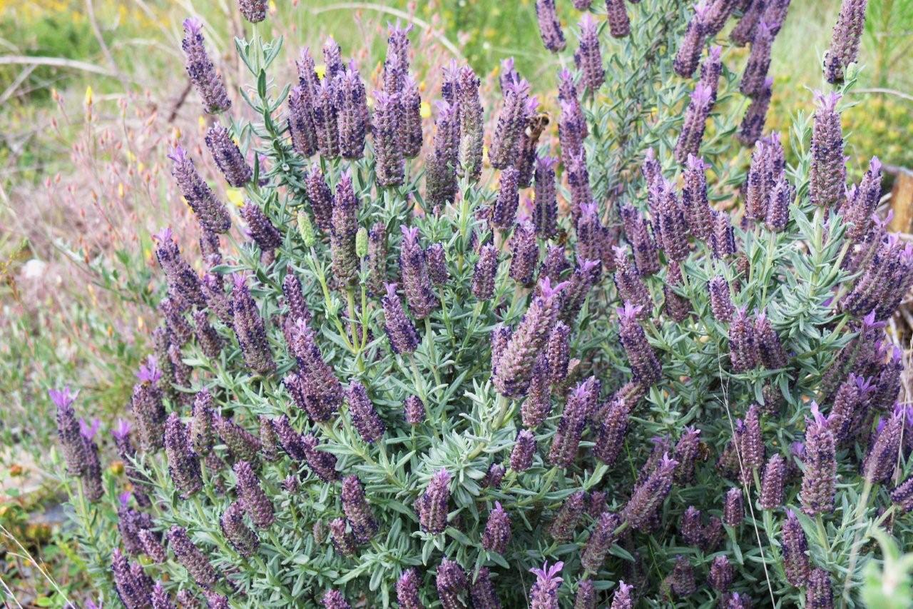 Uma planta que vale sempre a pena repetir é o rosmaninho (Lavandula stoechas) (10), não concordam? Oh! Logo ali está um canteiro de plantas já conhecidas (batón-azul) mas numa flor está uma borboleta, e parece estar a gostar! (11-12) É uma Melitaea athalia, ou… será uma Melitaea deione? Há algum especialista que se pronuncie?