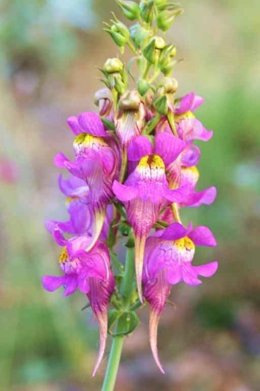Já com as cores “quentes” de um sol poente, ali, numa das que já foi uma das áreas mais afectadas pela Acacia longifolia, encontrei uma bonita planta de gladíolo-silvestre (21), mas havia muitas mais. E, duas centenas de metros à frente um canteiro de singulares dedaleiras (22). Para terminar, uma planta que não costumava encontrar no Cabeço Santo, mas mais nas proximidades dos carvalhais: a belissima Linaria triornithophora (23), conhecida pelo nome comum de esporas-bravas.