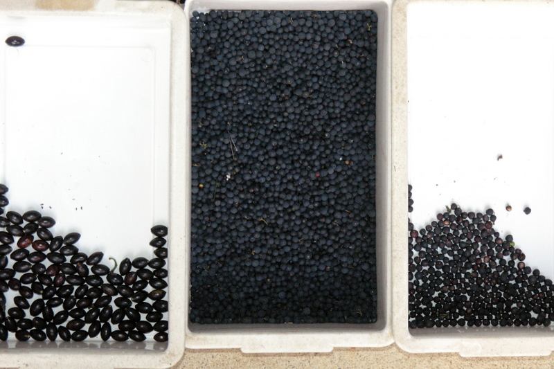 Descendo até ao Ribeiro de Belazaima, colhemos algumas castanhas, embora a maior parte dos castanheiros ainda não tenha começado a deixar cair a sua produção. Uma planta que não constava na lista do Projecto Criar Bosques mas que apresentava frutos maduros e com sementes era o hipericão-do-Gerês (Hypericum androseamum), um pequeno arbusto que nesta região se encontra espontaneamente apenas em locais sombrios e húmidos. Colhemos pois alguns. Pelo contrário, outras plantas alvo como o sabugueiro, o sanguinho ou o pilriteiro já não tinham frutos. Amadureceram já há algum tempo e as aves fizeram a colheita primeiro.