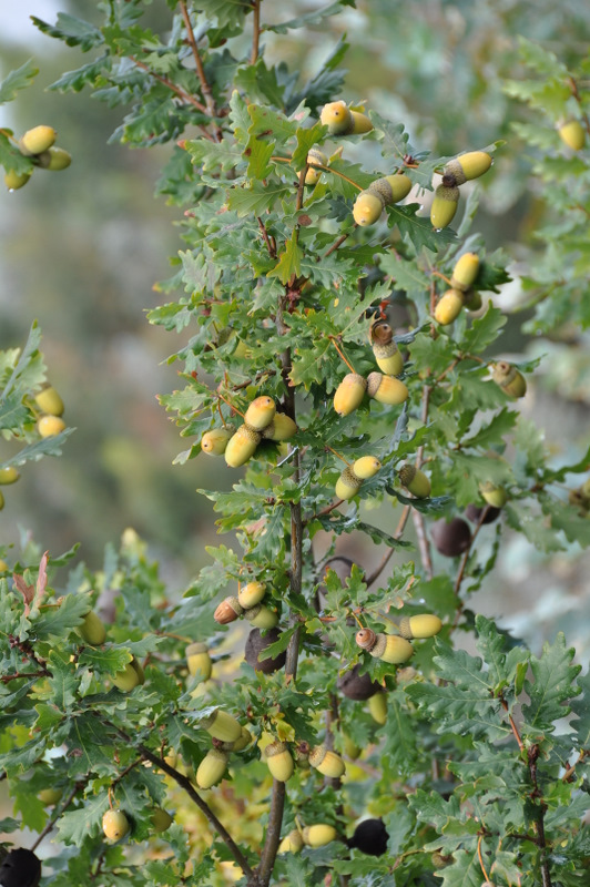 Este ano, como já todos devem ter reparado, é um ano de abundante produção de bolota de carvalho-roble. Até os pequenos carvalhos do Cabeço Santo, rebentados após o incêndio de 2005, já apresentam uma carga considerável.