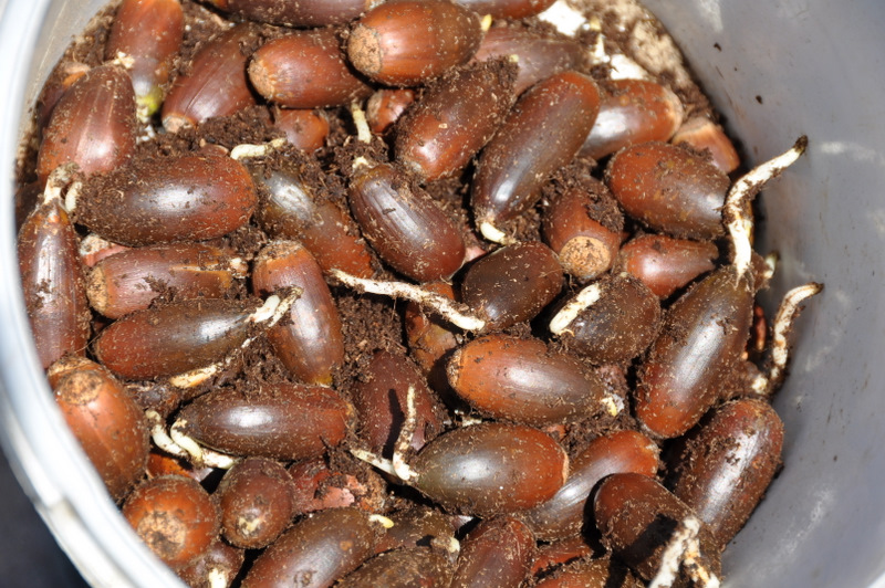 Contudo, na área onde se realizou a sementeira não se utilizará herbicida pois que a densidade das plantas de acácia emergentes não é demasiado elevada. Semearam-se bolotas de sobreiro e carvalho numa tentativa de emular o mais possível a disseminação natural destas sementes, isto é, enterrando-as um pouco e deixando o local com um mínimo de vestígios que possam atrair predadores. Como foi já referido, esta operação conta também com a extrema abundância de bolotas de carvalho que ocorreu este ano, que, espera-se, atraia a atenção dos predadores para as bolotas de fácil acesso, junto às árvores. É, em todo o caso, uma experiência, cujo resultado deverá ser avaliado mais tarde. Se não tiver um sucesso expressivo, a disseminação destas árvores terá de continuar a basear-se na plantação, operação muito mais dispendiosa.