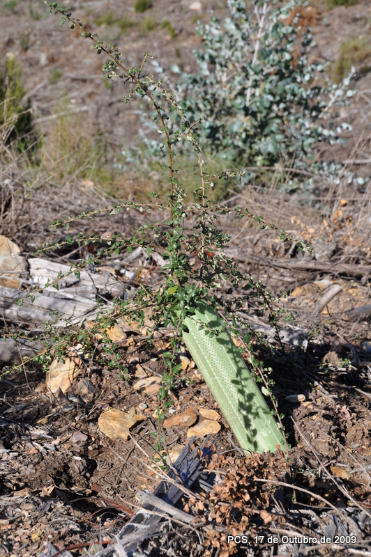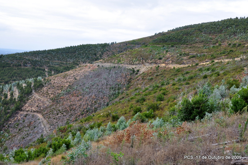 Depois continuámos em torno do vale 4b, um local em que as árvores plantadas (carvalhos) se apresentam com muito bom aspecto. Semeámos aqui bolotas de sobreiro, numa perspectiva de consociação. Mas o calor da tarde e as dificuldades do relevo começaram a cobrar o seu tributo, levando as voluntárias mais frágeis aos seus limites! Mesmo assim ainda se concluiu o dia com uma pequena sementeira junto ao Ribeiro, também numa área já plantada e onde, apesar de os sobreiros plantados se encontrarem com óptimo aspecto, foram alvo já em Setembro de uma investida dos javalis que, se não os arrancou, pelo menos deixou alguns deles meio tombados! Quem sabe como fazer a paz com os javalis?!