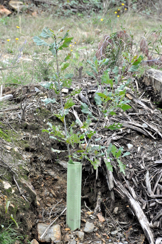 A sementeira continuou em direcção ao vale nº 6, já na propriedade da Silvicaima, onde já no Inverno passado tinham sido plantadas árvores – medronheiros na encosta, carvalhos no vale. Estas apresentavam-se, em geral, bastante bonitas, mas a eliminação das invasoras, essa, esteve longe de ser total, o que prenuncia a necessidade de ainda muito trabalho para a realização desse objectivo. Ainda mais será necessário a montante do vale 6, onde a intervenção inicial se fez apenas na margem direita, este ano.