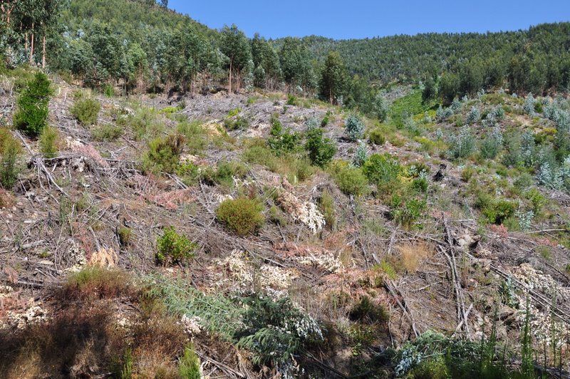 No dia 31 de Julho o tempo meteorológico deu tréguas depois de uma semana abrasadora, permitindo a um grupo de 4 voluntários pôr mãos às ferramentas e realizar mais uma jornada de trabalho voluntário no Cabeço Santo. Pela manhã o destino foi mais uma vez a área de confluência dos vales 3, 4 e 5, uma das áreas que ainda tem manchas problemáticas de mimosa, dado não ter sido possível efectuar pulverizações em locais de difícil acesso, com imensa lenha queimada e ainda com muitas plantas nativas que interessava poupar.
