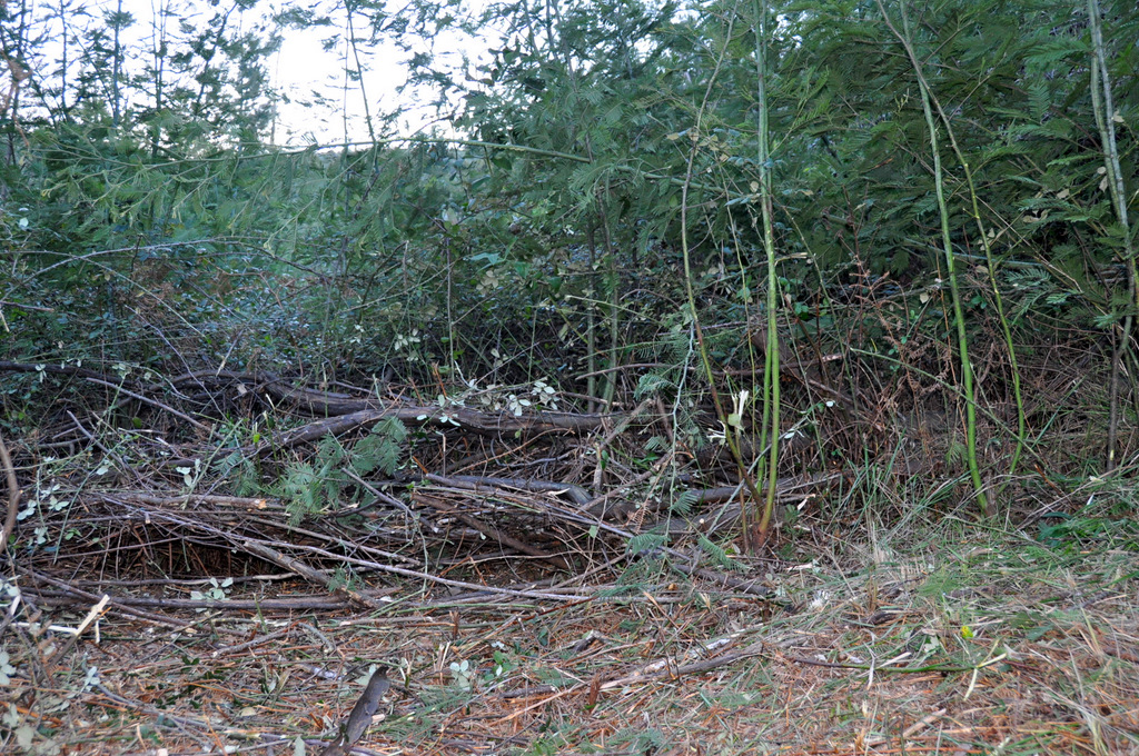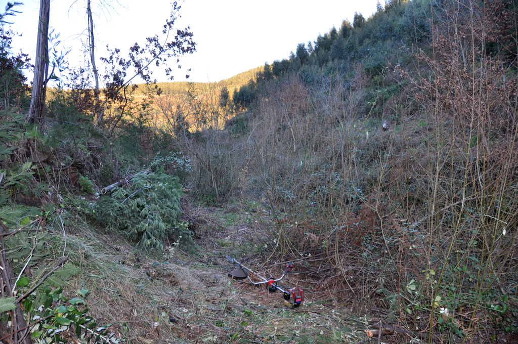 Um outro trabalho ainda realizado foi a (continuação da) limpeza da estreita leira existente na zona da Ribeira do Tojo, limpeza essencial para se poderem lá controlar as mimosas e o silvado e se plantarem árvores onde ainda houver espaço para elas. Aqui o pricipal problema é ainda a lenha depositada no chão, o que, em conjunto com o silvado e as mimosas, tornam o local impenetrável. Com paciência, lá se avançaram mais uns quinze metros em duas horas de trabalho, e ainda houve tempo para se plantarem alguns castanheiros num troço dessa leira que já tinha sido limpo noutro dia. O leito do rio ainda se encontra cheio de lenha, mas essa acabará por lá ficar até apodrecer, pois não é muito viável retirá-la e, de um ponto de vista ecológico, não se ganharia muito com isso. Já do ponto de vista paisagístico seria por certo diferente, mas este critério é secundário e não principal…