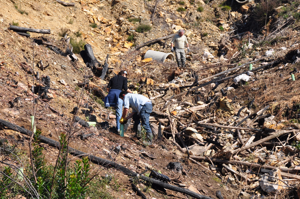 O voo longínquo de uma ave de rapina ou o mais próximo e fugaz de uma borboleta amarela, aparição ainda pouco vulgar nesta altura do ano, ajudou a animar os voluntários, que tiveram de dispender um esforço adicional neste terreno de elevado declive. Contudo pelas 17 horas todas as árvores estavam plantadas, o que ainda deixou algum tempo para outras actividades.