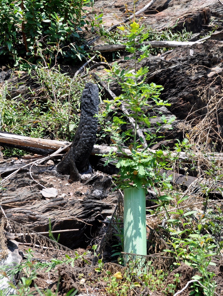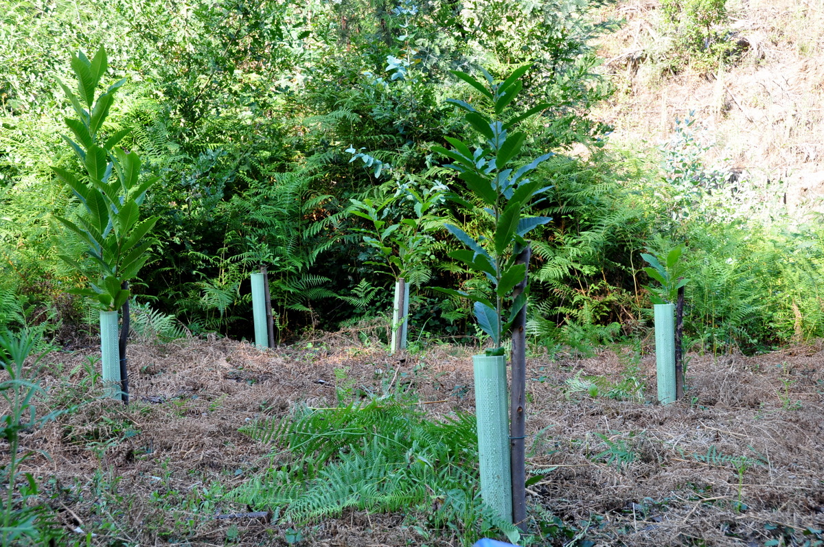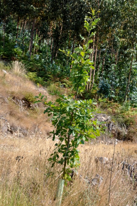 No coração do vale 4b, esse sim “conquistado” ao eucaliptal, os carvalhos aí plantados em 2009 encontram-se com diferentes níveis de vitalidade, mas uma boa parte com excelente aspecto: