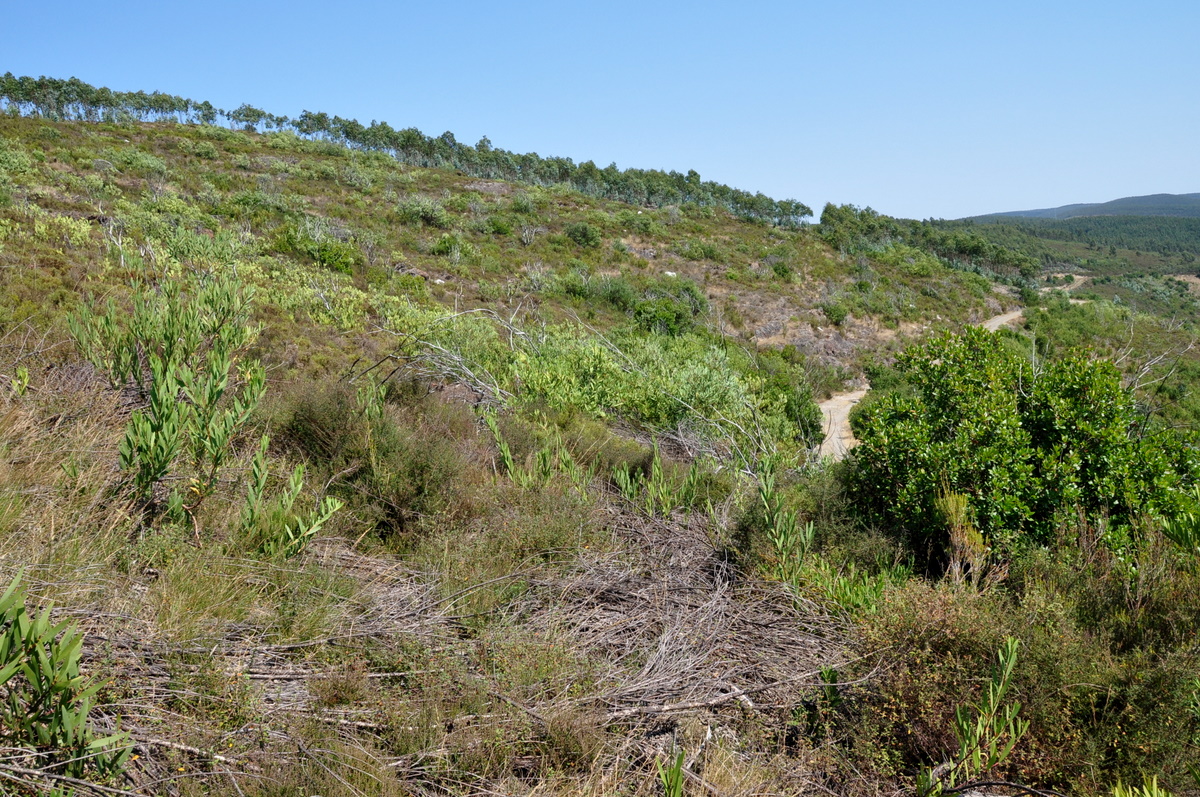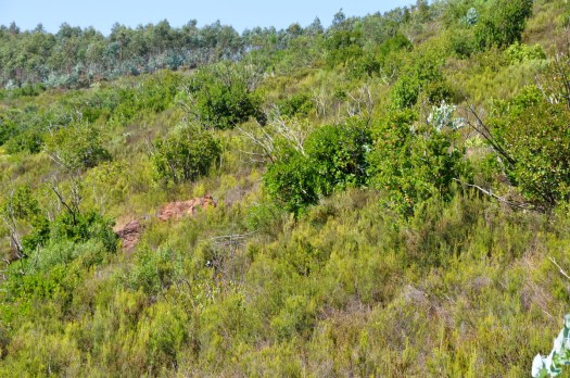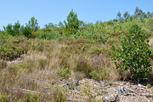 Ao deixar este local, uma perspectiva do terreno da Quercus, onde os ramos dos medronheiros queimados em 2005 ainda se destacam entre os rebentos já com quase 6 anos de crescimento.