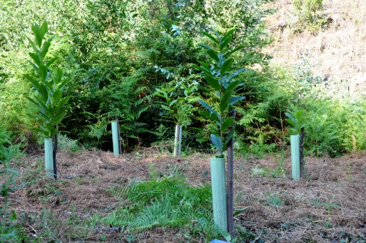 Para terminar, uma passagem pela última área plantada este ano, onde as árvores plantadas se encontram em geral com excelente aspecto, algumas já com 1,5 m de altura! A equipa que trabalhou nesse dia (https://ecosanto.wordpress.com/2011/03/20/ultima-jornada-de-inverno/) não brincou em serviço.