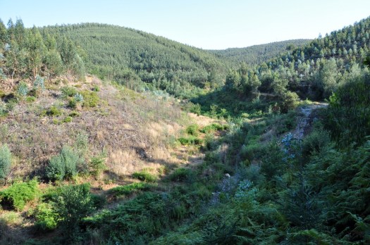 E agora, mesmo para acabar, uma perspectiva do vale do Ribeiro a montante da cascata do moinho, onde a intervenção se realiza nas duas margens do Ribeiro (a jusante é, por agora, apenas numa margem).