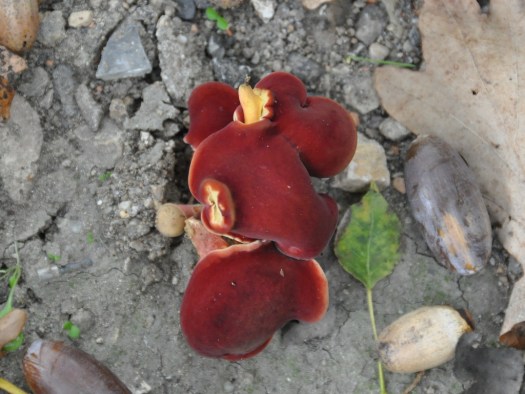 No parque de merendas da Póvoa-do-Vale-do-Trigo, a equipa admirou um carvalho centenário e observou diversos cogumelos. Um voluntário achou por bem ensinar os leitores deste blogue a distinguir as bolotas viáveis das inviáveis e as bolotas dos bugalhos, não vá alguém, entusiasmado por este exemplo, pôr-se por aí a apanhar bugalhos para semear no próximo Outono!