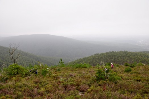 Já era meio dia quando a equipa subiu ao Cabeço Santo para uma espécie de repetição ajustada do programa de há duas semanas atrás: trabalhou-se uma hora nas háqueas e acácias-de-espigas entre as propriedades da Quercus e da Altri Florestal, junto à área trabalhada duas semanas antes, e almoçou-se não longe dos medronheiros carregados de frutos que por ali os continuam a amadurecer lentamente. Houve uma diferença: as nuvens e a neblina mantiveram o horizonte difuso e misterioso, pelo que as atenções concentraram-se na proximidade.