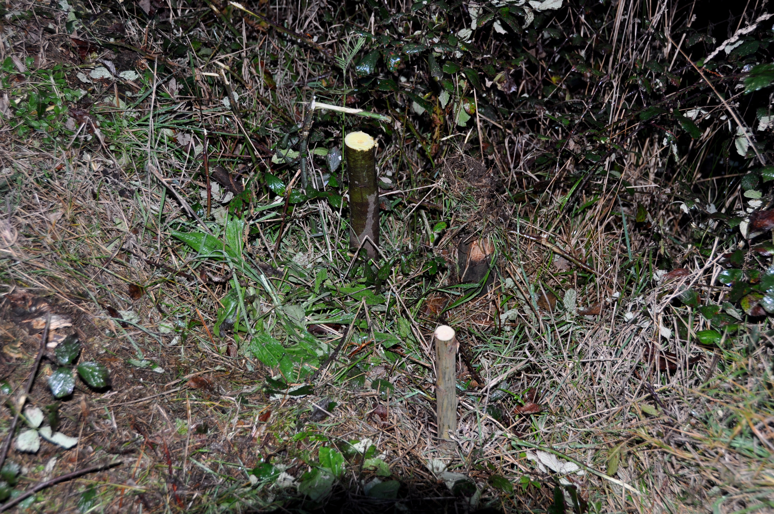 Em 1º plano: estaca de salgueiro. Em 2º: mimosa cortada e "tratada"