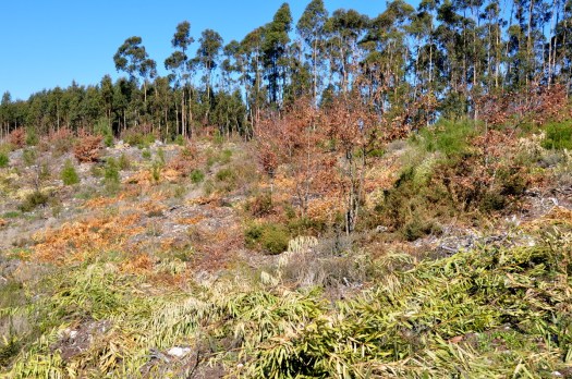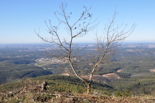 Ao terminar a manhã, a equipa decidiu descer a um local mais abrigado para o almoço, pois no cimo do monte o vento frio rapidamente punha qualquer um a tiritar. Pelo caminho deu-se uma olhadela à mancha de carvalhos que fica junto ao marco geodésico, e onde recentemente uma equipa da Altri Florestal deu mais uma contribuição para a remoção das acácias-de-espigas que a apoquentam. Olhando para a área mais larga de vários hectares, que já esteve impenetravelmente invadida com acácia-de-espigas, não há dúvida que o caminho já percorrido foi longo e proveitoso.