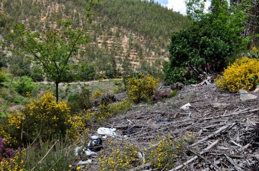 E foi já ao princípio da tarde que a equipa desceu até ao Ribeiro, para realizar trabalhos de acompanhamento das árvores plantadas e de controlo das mimosas. Logo à chegada uma surpresa desagradável: alguém tinha depositado lixo junto a um carvalho (recorde-se, estamos a vários km da povoação mais próxima). Como tal acto nem merece que mais tempo lhe seja dedicado, passemos à frente.
