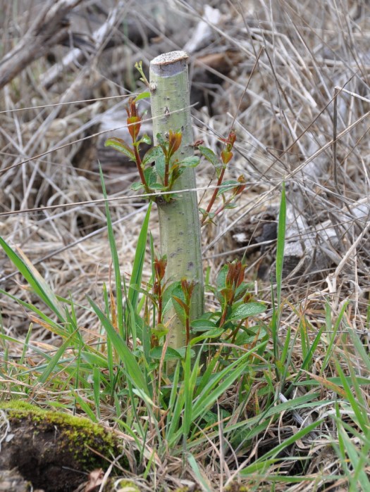 Estaca de salgueiro plantada em Janeiro a rebentar