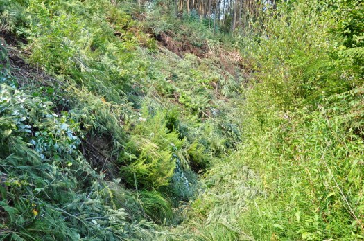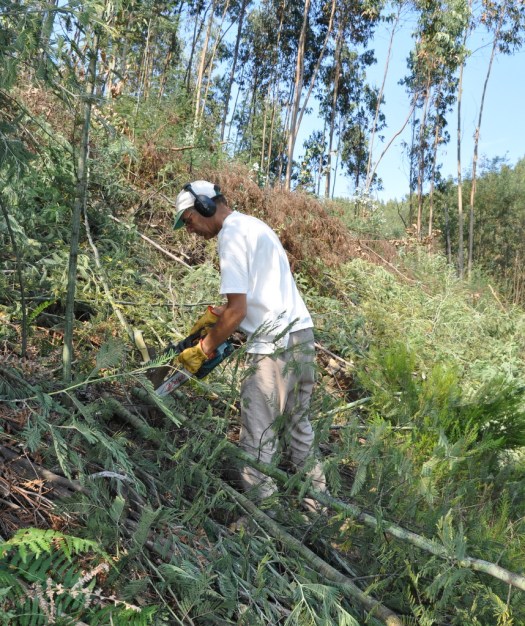 A pequena equipa terminou o dia com cansaço mas satisfeita, e compreendendo melhor porque não são, em geral, muitos os voluntários: trata-se de um trabalho num terreno nada fácil, pelo declive e a lenha depositada; os resultados vão-se vendo mas lentamente, com avanços e recúos, num mundo em que tudo se quer vertiginoso e com resultados rápidos e de preferência espectaculares; nem sequer se está a salvar nenhum animal raro nem nenhuma área protegida; se se descansa um pouco num tapete de gramíneas corre-se o risco de apanhar uma carraça, e as moscas, essas, não dão um minuto de descanso; as ferramentas – o tesourão, a navalha, a moto-roçadora, a motosserra – não são exactamente brinquedos, e algumas fazem barulho; usa-se um produto químico tóxico, pelo menos para as plantas – o herbicida; a esmagadora maioria dos voluntários, por estranho que possa parecer, trabalha para recuperar uma paisagem que não é a do seu quotidiano, e muitas vezes terminam cada jornada sujos e suados; a comida não tem muitas variantes… Como se vê, não se pretende iludir ninguém, embora nem todos os inconvenientes estejam presentes em todas as jornadas. E agora, ainda há voluntários para a jornada de aniversário, ainda por cima de dois dias?!