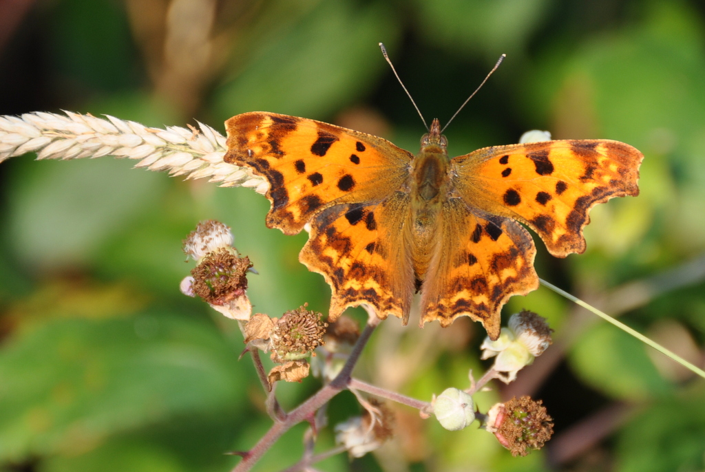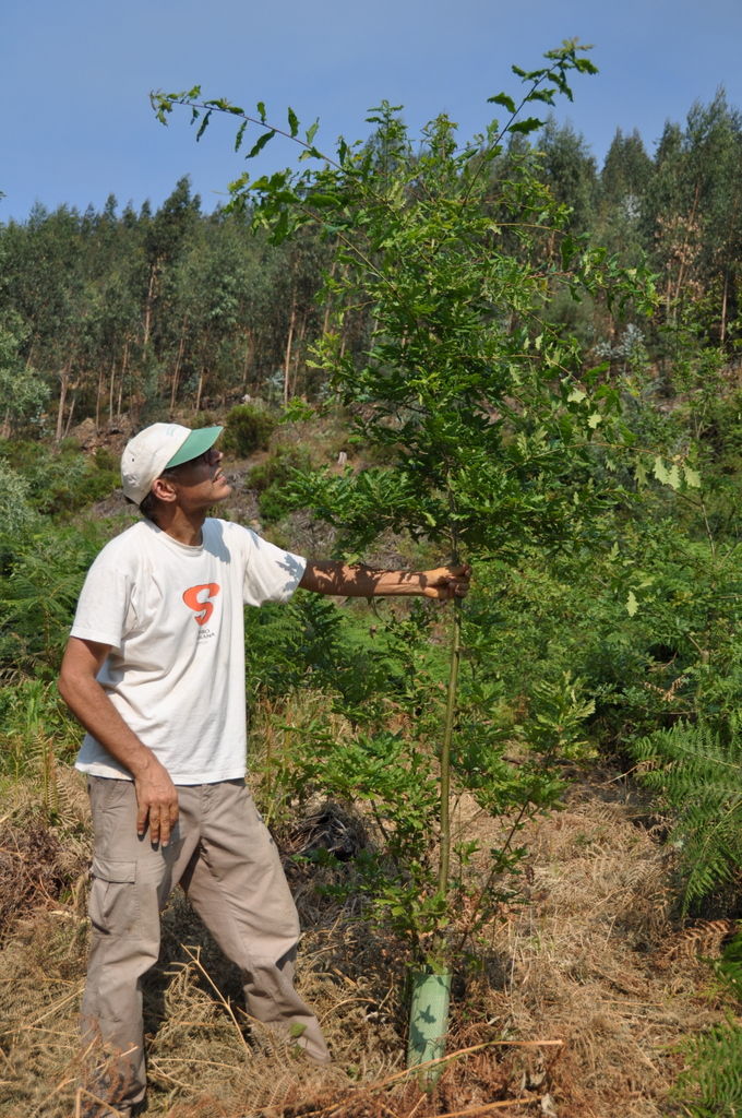 Já à tarde ainda foi tempo de realizar mais alguns trabalhos de limpeza da vegetação concorrente junto das árvores aqui plantadas em 2010, e também de parar um pouco para admirar os carvalhos que já atingem, nos melhores solos, alturas de mais de 2 metros, e outras coisas belas que apesar de tudo por aqui aparecem como a singular Polygonia c-album, que generosamente nos concedeu algumas fotos.