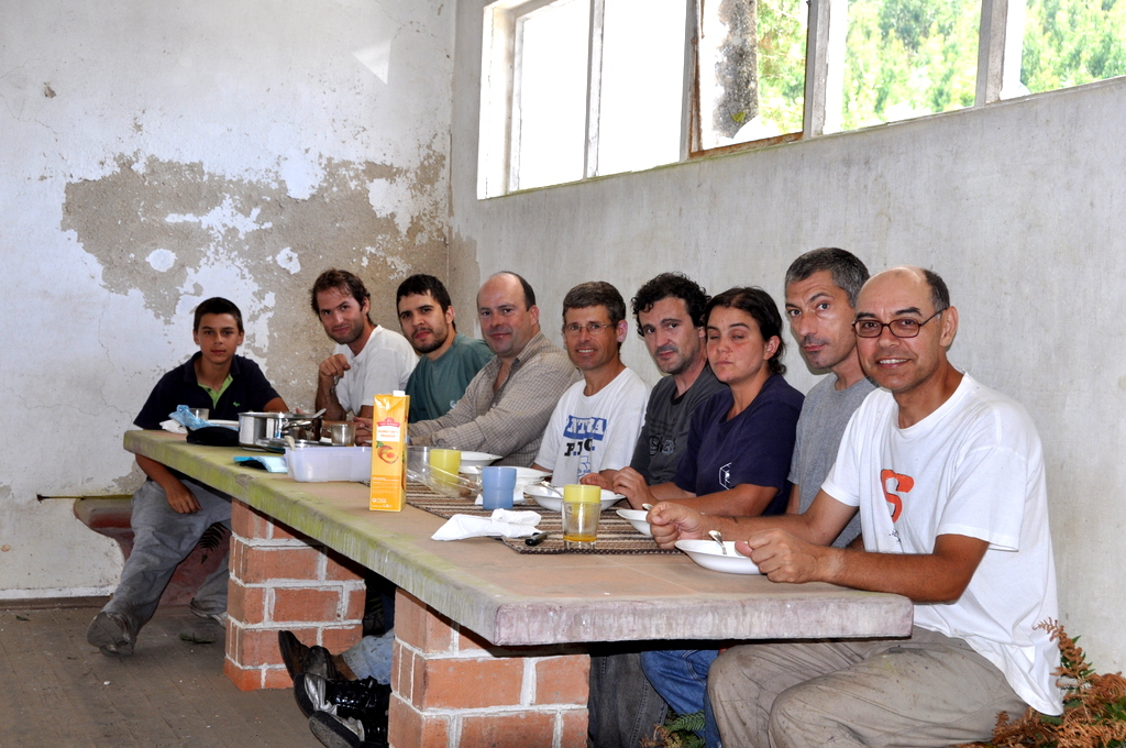Quando chegou a hora do almoço, foi com toda a justificação que a equipa se deslocou até à Casa de Santa Margarida para um recuperador almoço. Como estamos em período de aniversário do projecto este almoço foi à mesa e com comida cozinhada com especiais dotes culinários! Para culminar com “a cereja em cima do bolo” deu-se a conhecer aos voluntários presentes que a Altri Florestal, gestora deste património, tinha dado luz verde para a recuperação desta grande casa de antigos trabalhadores florestais para fins de educação e promoção ambiental. Claro que até aí se chegar ainda haverá um longo caminho a percorrer, mas tudo começa com uma intenção e com a persistência necessária para se atingir o objectivo imaginado. E afinal, mesmo sem qualquer intervenção, já esta grande casa está ao serviço dessa intenção!