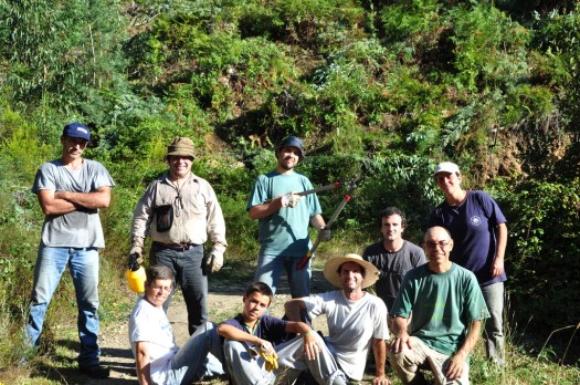 Inicialmente prevista para dois dias, esta memorável jornada acabou, por condicionalismos diversos, de entre os quais a chuva, que começou mansamente a cair ainda na tarde de Sexta, por se realizar apenas no Sábado. Mas não foi por isso que foi menos intensa, bem pelo contrário: aproveitando a dinâmica de dezoito braços, dos mais jovens aos mais veteranos, e apenas um dia para fazer uso de toda essa energia, decidiu-se abordar dois terrenos particularmente difíceis.