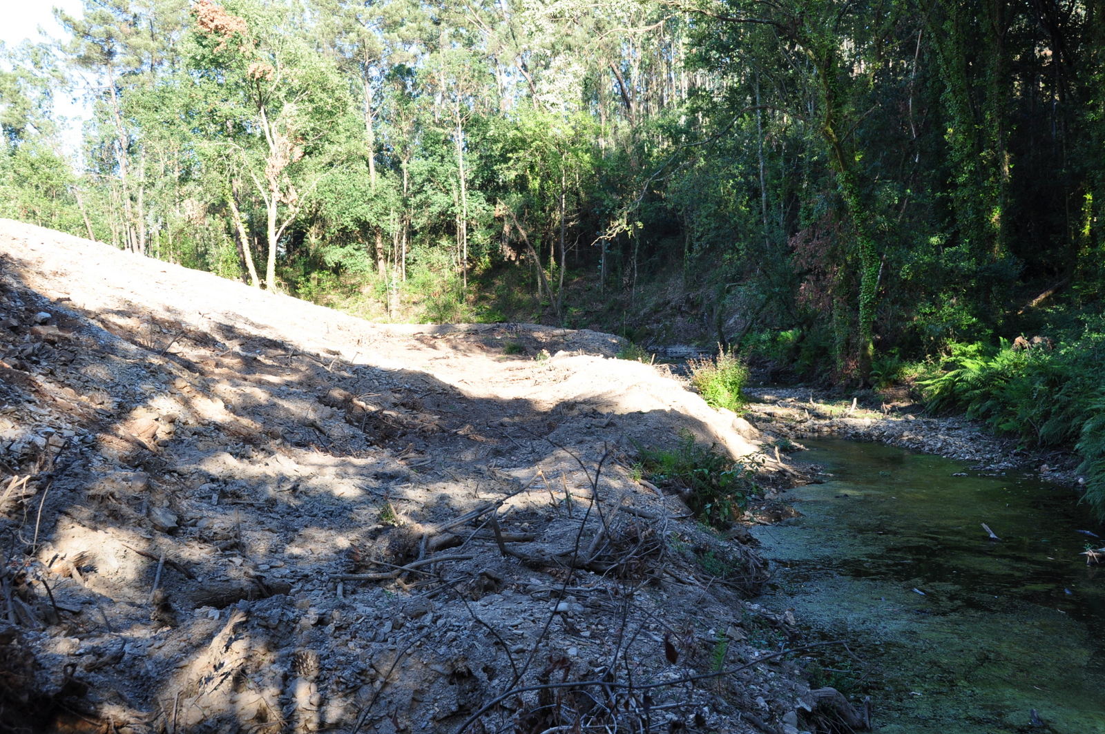 Logo a seguir inicia-se a subida da encosta, aparecendo o ribeiro de Belazaima logo ali à direita. No entanto o estado de conservação das suas margens é aqui tão mau, que talvez os olhares se desviem involuntariamente… De facto, todo este troço do ribeiro, entre a ponte de Alvarim e a sua foz no rio Águeda, se encontra em estado lastimoso, por via de agressivas mobilizações de solo das encostas adjacentes e a presença opressiva das mimosas. Logo ali à frente, já na descida para a ponte de Alvarim, se constata um impressionante exemplo recente deste tipo de intervenção: um pedaço de encosta muito declivosa armada em terraços à custa de impactantes movimentos de terras, a vegetação ribeirinha, se alguma ainda estivesse lá, engolida por pedras, solo e lenha, o ribeiro transformado numa vala para escoamento de água e por fim, os eucaliptos, justificação última de toda esta desastrosa intervenção. Apenas uma pequena área, apenas umas dezenas de metros de extensão do ribeiro, mas é assim que, a pouco e pouco, como a rã na panela de água ao lume, a nossa paisagem vai sucumbindo lentamente à determinação do interesse particular e à ausência do Estado, que, duma forma ou de outra, vai lavando as mãos da sua responsabilidade em proteger os bens comuns.