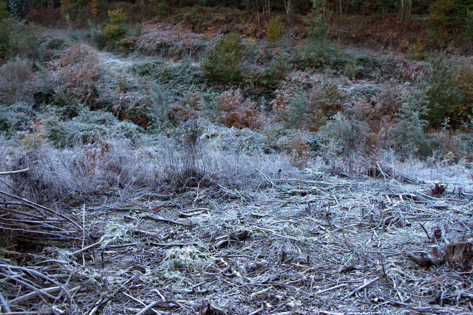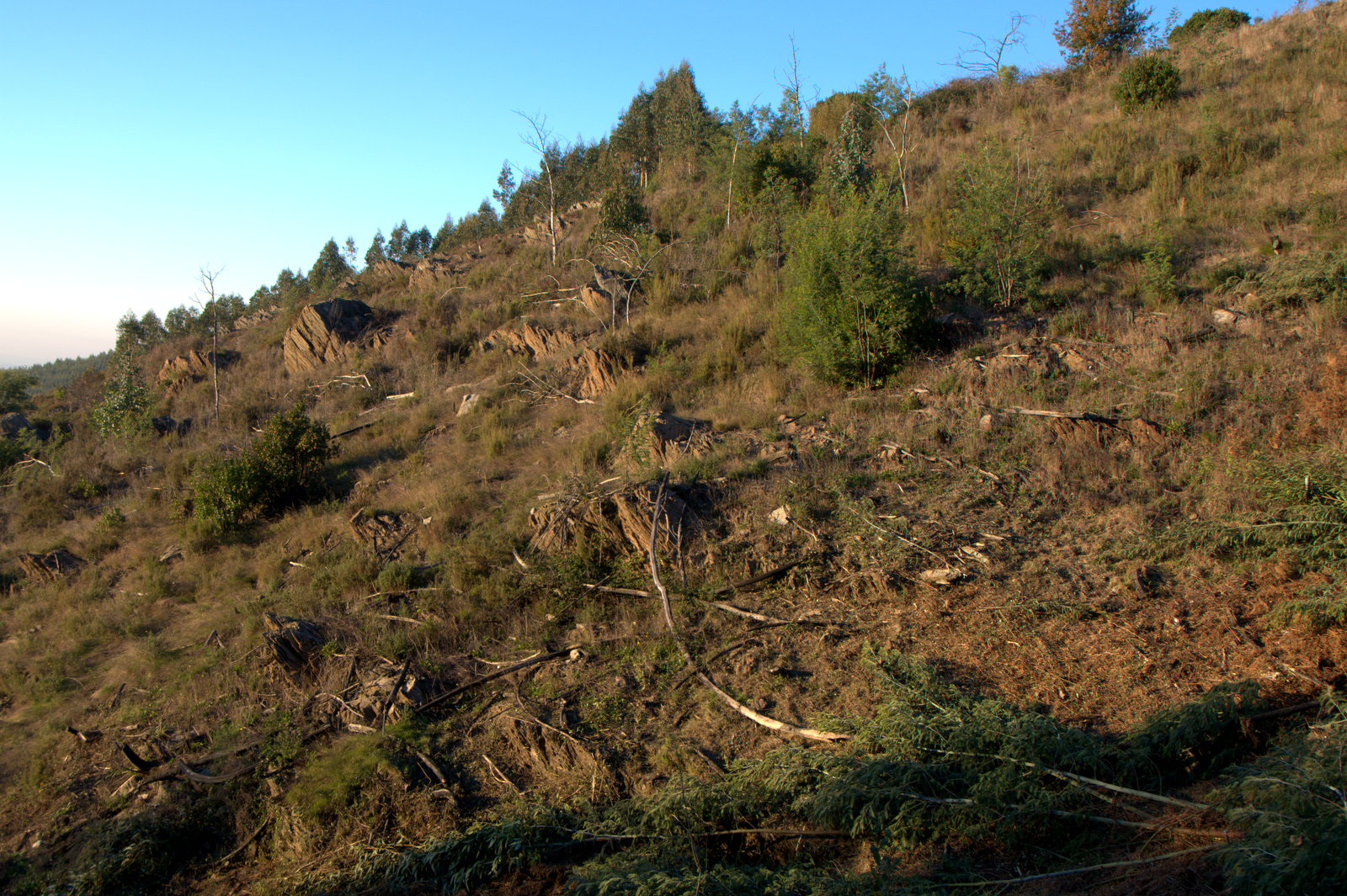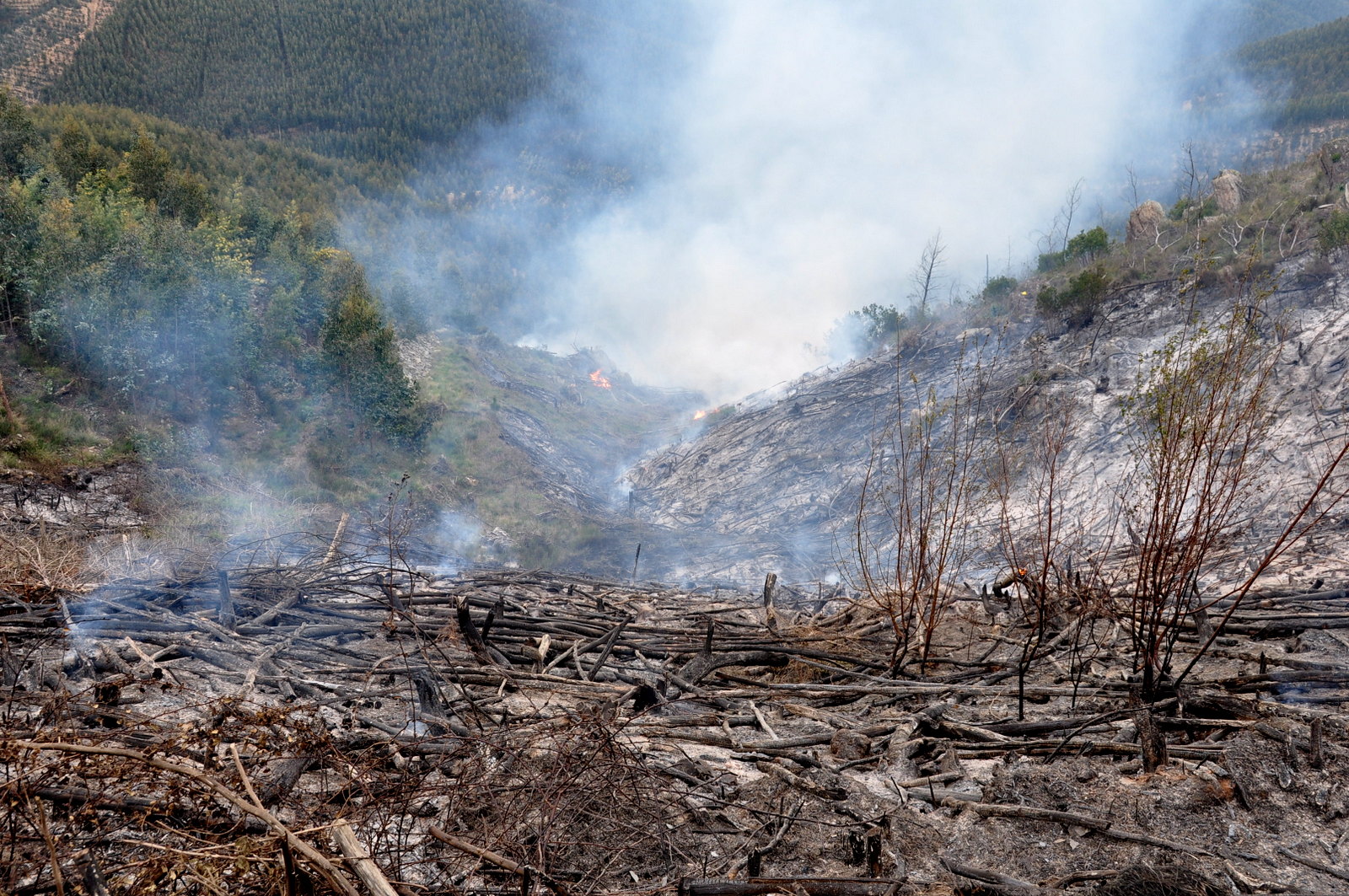 Seguiu-se a inevitável pulverização da rebentação com herbicida, mas depois, com tanta lenha espalhada pelo terreno, quase não se conseguia lá entrar! Foi só em 2011 que se fez uma queimada controlada para limpar o terreno dessa lenha.