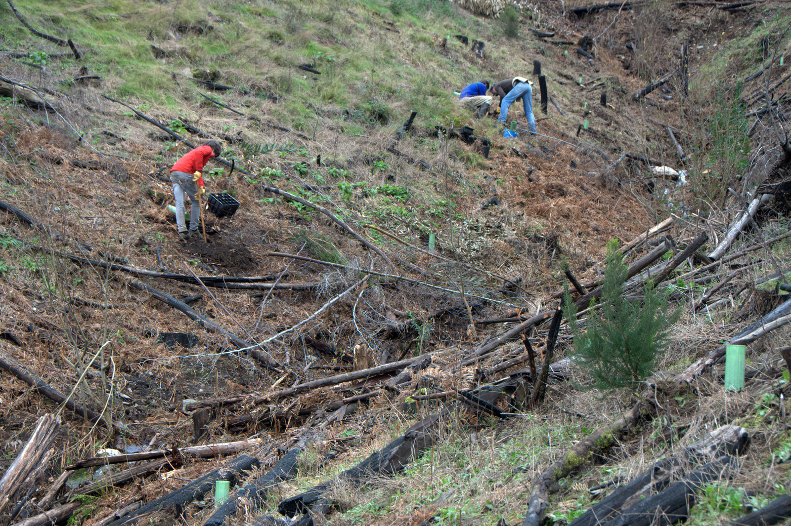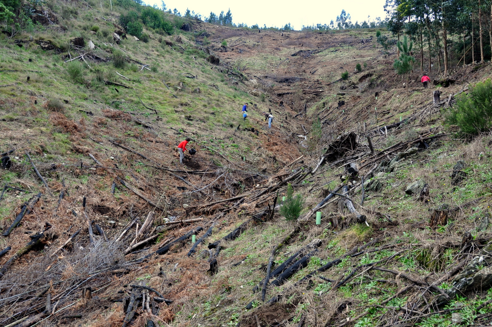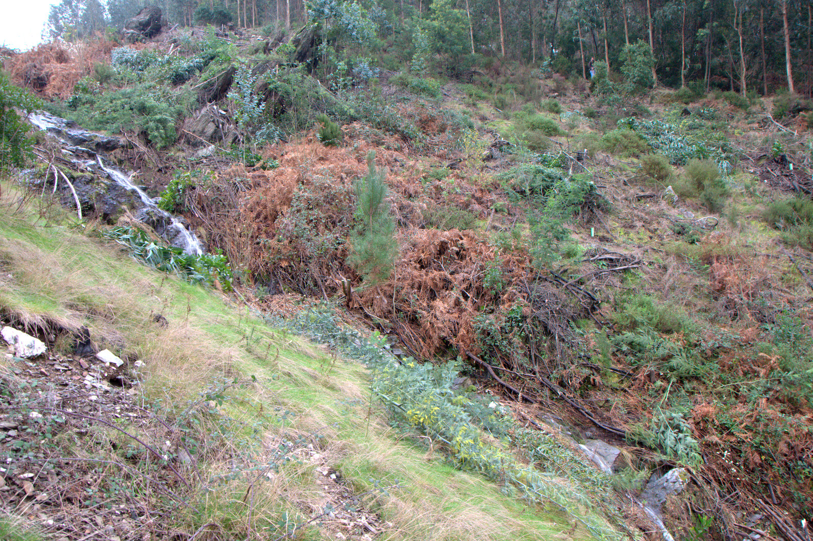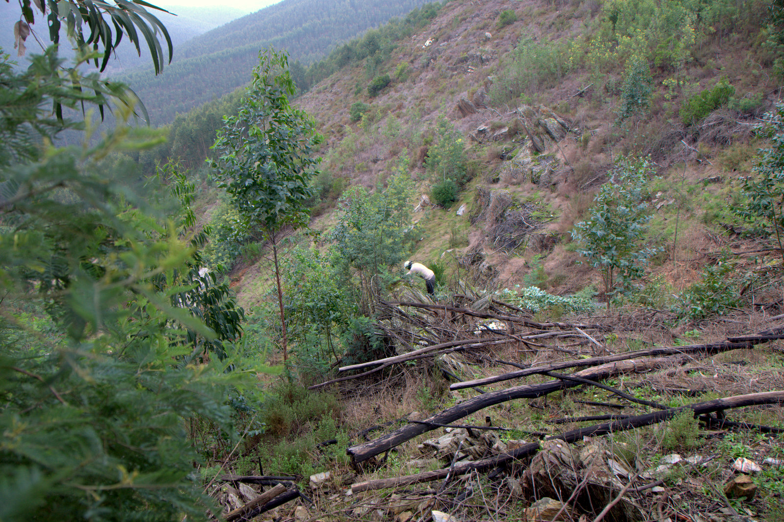À tarde os trabalhos continuaram, primeiro acima, depois abaixo dos picos rochosos de xisto, e ainda houve tempo para cortar algumas mimosas e eucaliptos que por ali foram ficando, e que não ficavam muito bem na foto da cascata que queríamos tirar no final! E no final, a área estava completamente plantada, só ficando umas poucas mimosas e eucaliptos por cortar para que esta importante extensão do vale fique definitivamente no “bom caminho”!