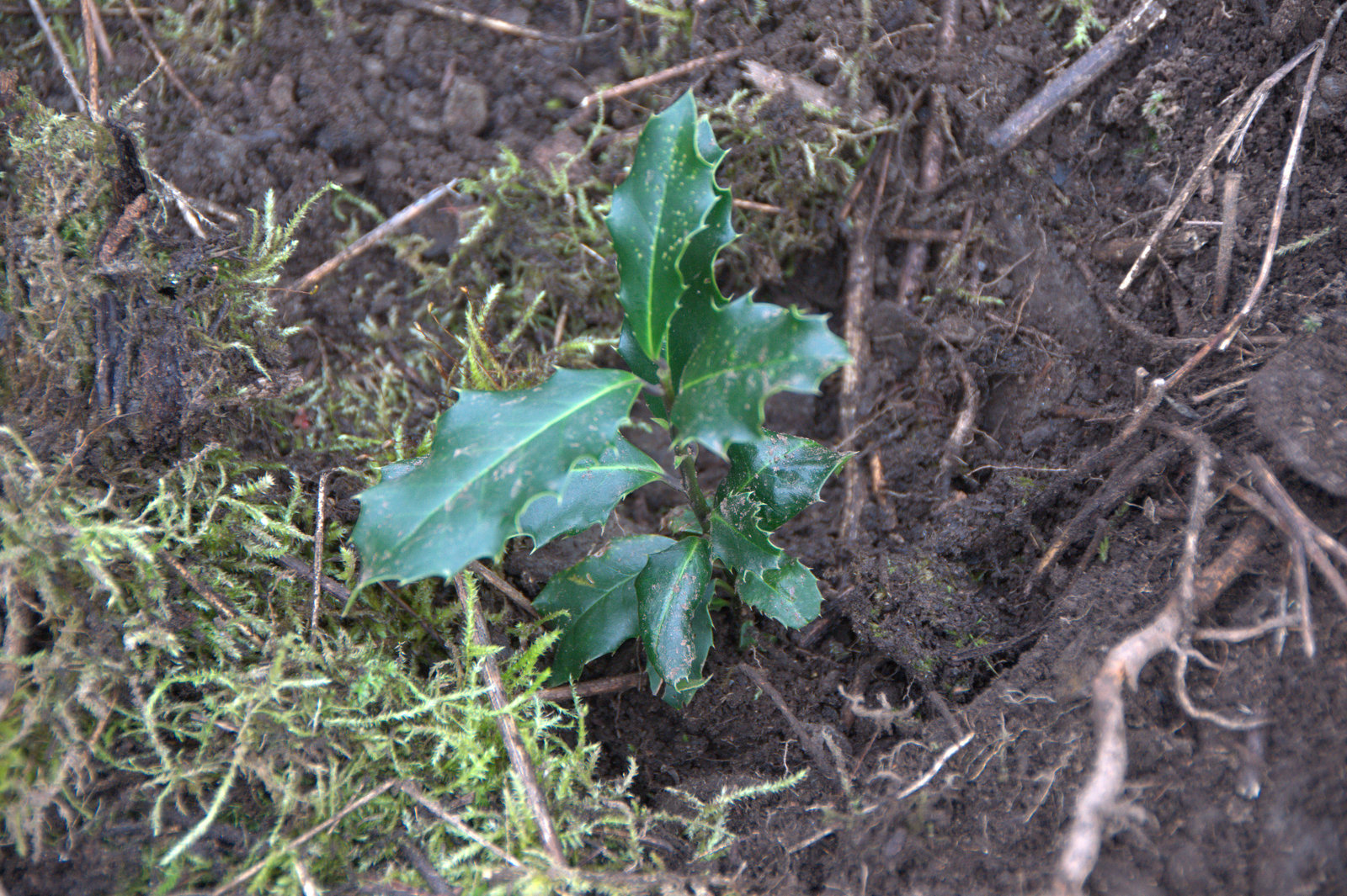 Este, como praticamente todos os outros do Cabeço Santo, é um vale com “personalidade”: abre-se sobre a cabeceira como uma asa de borboleta, depois as suas encostas íngremes convergem para uns rochedos de xisto revestidos de plantas rupícolas. De um lado do vale, uma encosta rochosa, cheia de afloramentos, uma das poucas áreas do cabeço onde nem sequer pinheiros foram semeados; do outro lado, solos profundos e férteis, onde o aproveitamento para eucaliptos deixou uma faixa de 20 ou 25 metros, essa onde agora podemos plantar carvalhos, azevinhos e medronheiros. Azevinhos e medronheiros?! Esta combinação faz soar uma campainha na cabeça de qualquer biólogo, mesmo sem muitas inclinações para a botânica. E entre os voluntários havia um! Bem deve-se esclarecer que as combinações reinventadas foram: carvalhos e azevinhos (em certos sítios) e carvalhos e medronheiros (noutros sítios), sempre procurando pressentir as características de cada sítio e olhando para o que já havia em redor. O vale segue selvagem em direcção ao ribeiro passando, depois do novo caminho que hoje não nos deu passagem, por uma área ainda dominada por um alto sobreiro, orgulhosamente sobrevivente à “tempestade” de 2005. Depois do antigo caminho da mata é uma pequena mas bem ancorada mancha de mimosas que ainda aqui resiste, mas que, naturalmente, não será para ficar. E o vale atinge o ribeiro em mais uma escarpa de difícil acesso, junto aos vales 3 e 4 onde ainda há muito para fazer no que toca às mimosas. Um vale que, só por si, podia ser alvo de um projecto, podia ter só para si um grupo de cuidadores, um núcleo de estudiosos, uma associação de amigos, uma página no Facebook! O vale nº 5!