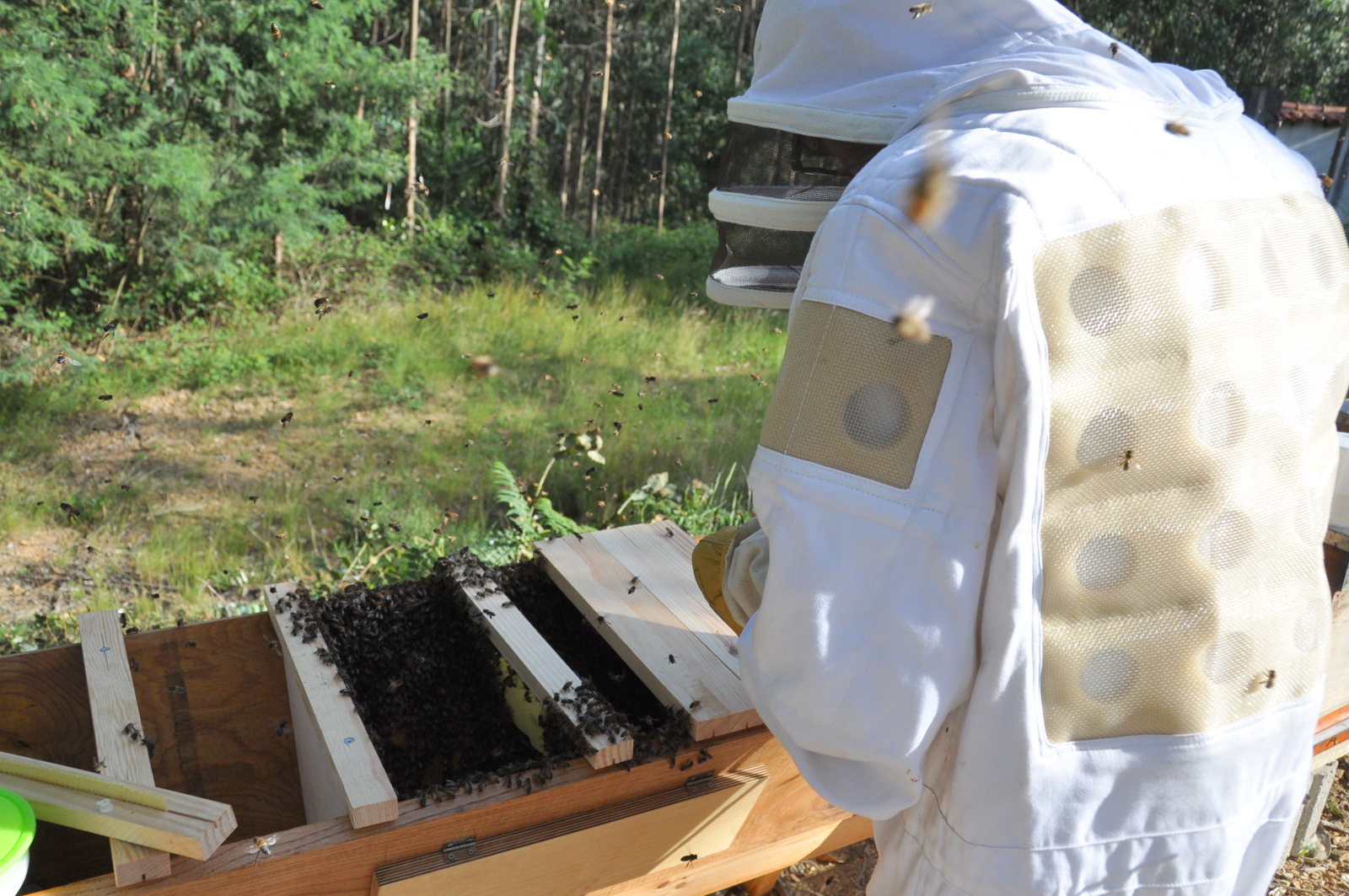 No dia 5 de Junho foram instalados no Cabeço Santo 5 novos enxames de abelhas, três em ninhos de colmeia lusitana, um numa colmeia adaptada da lusitana segundo as ideias do “permapiculturista” argentino Oscar Perone e uma hTBH, uma colmeia horizontal segundo as ideias do inglês Philip Chandler (www.biobees.com). Sempre presente nesta instalação esteve e continuará a estar o princípio de conduzir o maneio apícola da forma mais saudável possível para as abelhas, experimentando o que se vai fazendo nesse domínio noutras paragens.