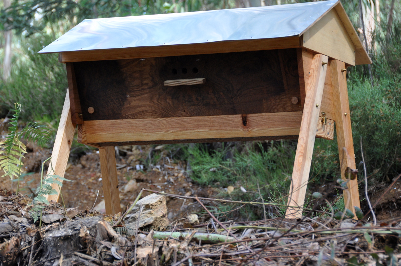 A colmeia hTBH é a “vivenda” das colmeias e caracteriza-se por não ter quadros mas apenas barras a partir das quais as abelhas constroem os favos. Estes dispõem-se apenas horizontalmente e não verticalmente, como nas colmeias “normais”, nas quais as meias-alças de reservas (mel) se vão acrescentando sobre o ninho. Na colmeia horizontal as reservas são apenas barras adicionais, cada vez mais afastadas do centro do ninho. Isto permite colher estas reservas com perturbação mínima sobre o ninho. Na hTBH os favos não são quadrados nem rectangulares mas têm uma forma mais próxima do que as abelhas construiriam naturalmente. Outra característica interessante desta colmeia é ter um “eco-floor”, um chão onde se promove o surgimento de uma fauna de insectos úteis à reciclagem e limpeza dos resíduos do enxame. A arquitectura da colmeia hTBH ajuda a colónia a manter as condições internas necessárias mesmo quando exteriormente a temperatura, a radiação, e outras condições são extremas. É também uma bonita colmeia!…