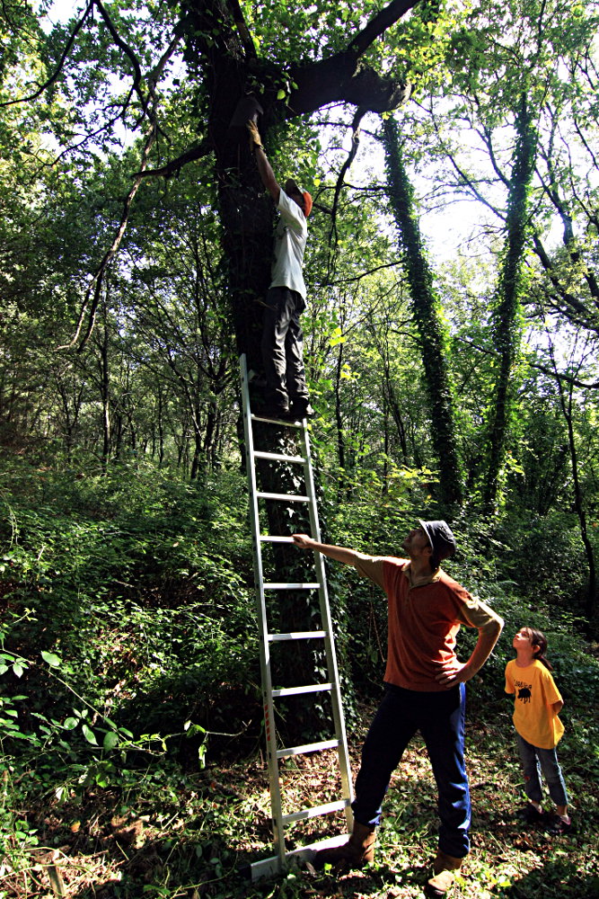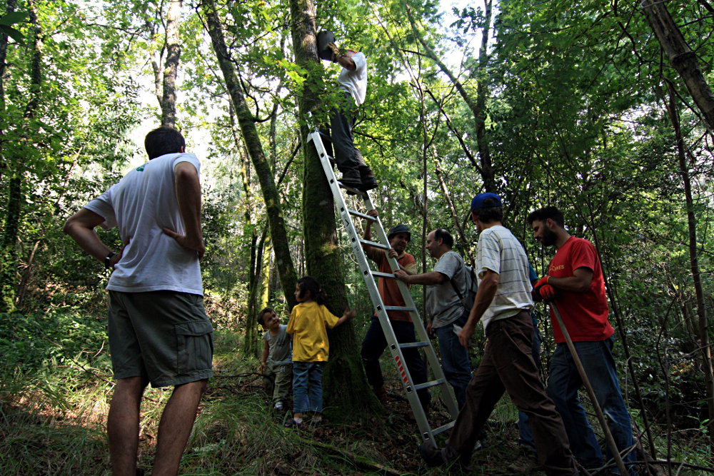 Tudo começou com a apanha das bolotas. Ao contrário do anterior, este foi um ano “boloteiro”, mas não demasiado. Em todo o caso, as bolotas de carvalho-roble ainda agora começaram a cair. A recolha realizou-se no carvalhal do Valinho Turdo, junto a Belazaima, que até já parece um bosque “antigo” embora tenha só 25 anos nas suas partes mais antigas. Deste modo, ainda não é realmente uma formação climácea e um indicador disso é que ainda é ocasionalmente necessário controlar mecanicamente o silvado, para que ele não absorva só para si o espaço do sub-bosque. Ou para que se consiga fazer uma boa colheita de bolotas sem picar demasiado os dedos!