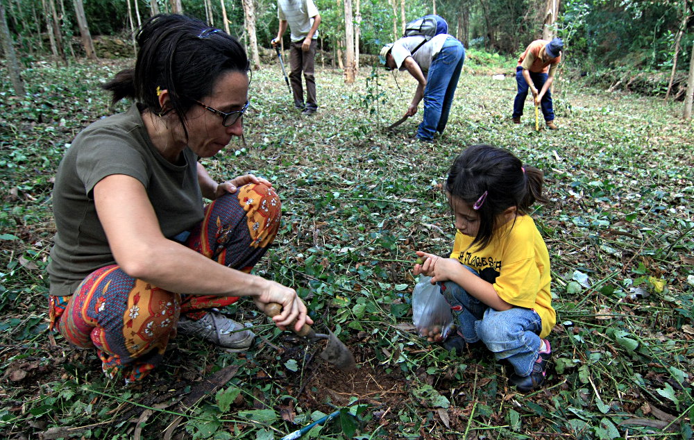 À tarde a equipa deslocou-se até ao Cabeço Santo, para começar um bosque a partir do zero, ou quase! Dado que havia participantes dos 2 aos 50, escolheu-se para começar um local de fácil acesso e de fácil intervenção. Acção: semear bolotas e castanhas, numa área que até agora tinha apenas silvado, mimosas e eucaliptos. Bem, também alguns carvalhos espontâneos pequenos, para proporcionar inspiração. Todas as sementes foram bem camufladas no solo para não atraírem a atenção dos predadores. Xiiiiu! Não divulgem por ratos, gaios e javalis!