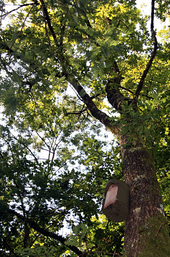 Semeada a parcela, foi tempo de voltar aos ninhos. Mas agora para colocar novos ninhos, de facto, os primeiros a serem instalados no Cabeço Santo. Foram seleccionadas duas áreas com árvores grandes, que não são muitas no Cabeço Santo, e por isso a escolha não foi difícil. São carvalhos que passaram com sucesso a provação de 2005, e que agora já sararam a maior parte das marcas que 2005 lhes deixou. E aí estão eles, de “braços” abertos, prontos para acolher, proteger, alimentar.