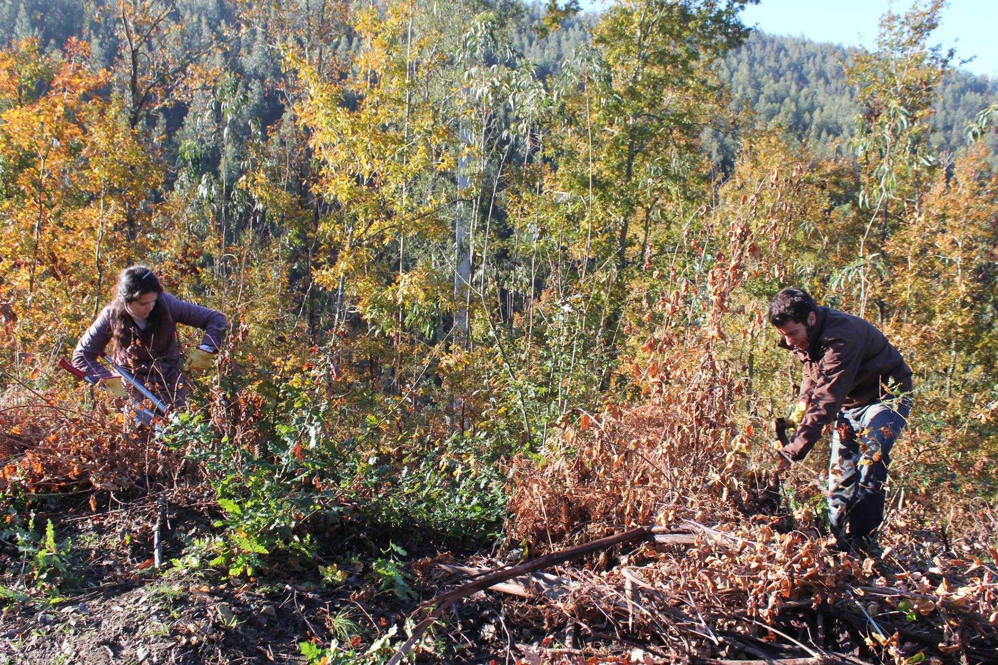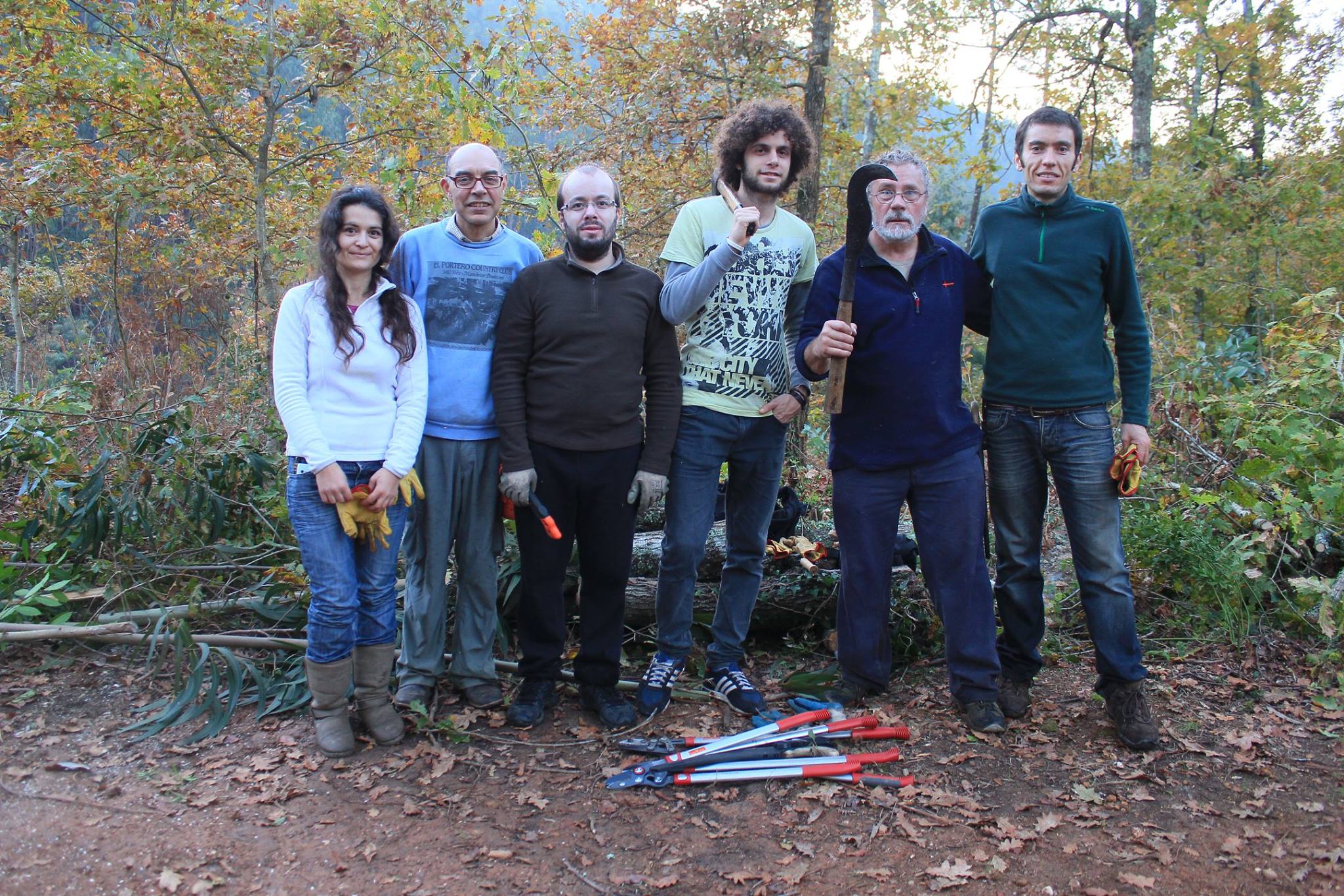 Está já à vista o que havia a fazer: seleccionar rebentos das árvores cortadas pela base, cortar os carvalhos muito danificados ou em excesso, cortar os eucaliptos… Muito trabalho de tesourão e também motosserra, e ainda um pouco de motorroçadora. Mas, e dado que todos os voluntários eram estreantes, ainda houve tempo para uma pequena caminhada até ao apiário do Cabeço Santo: Foi bom, porque foi uma parte fértil em troca de ideias…