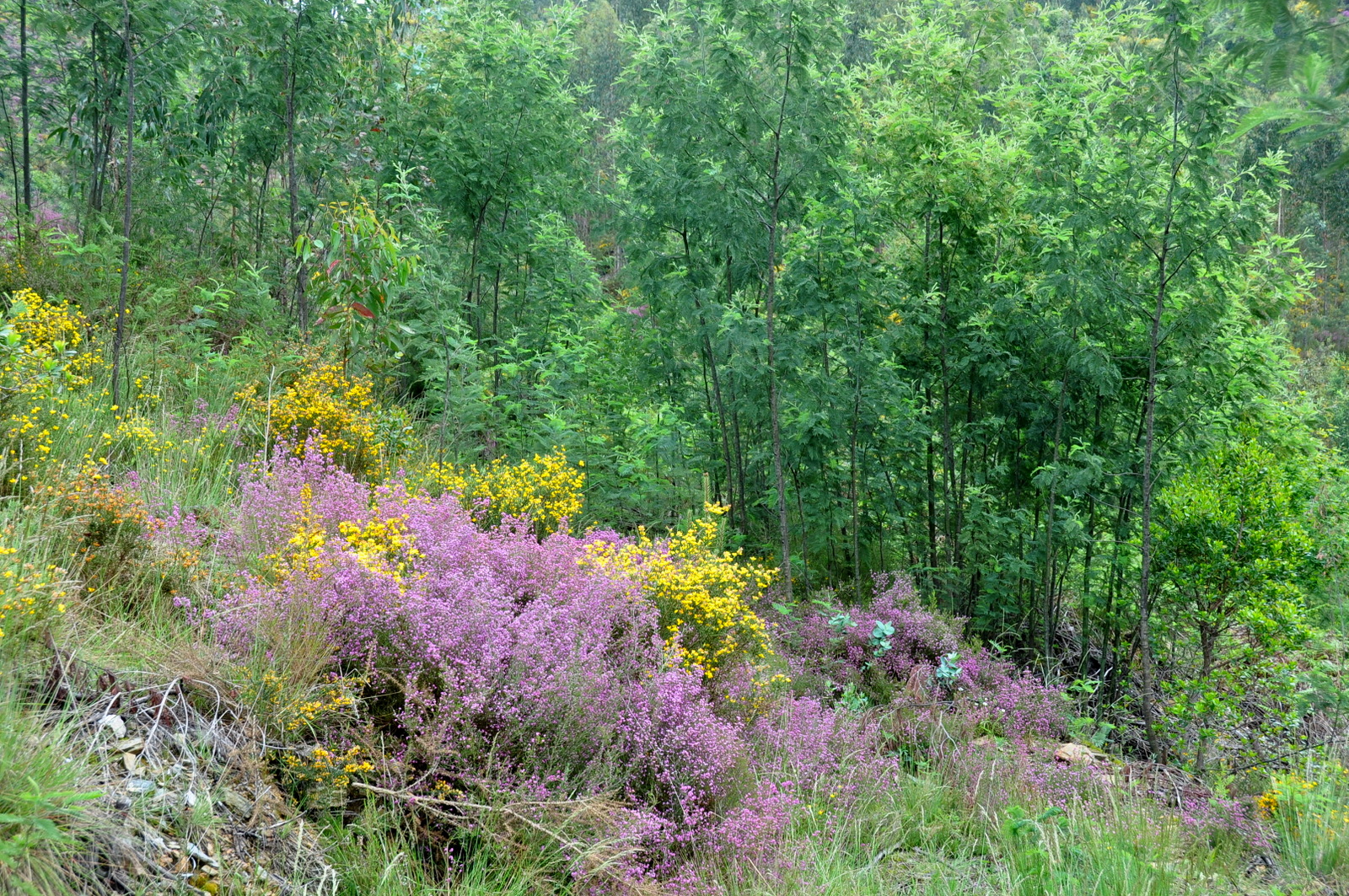 O destino foi, mais uma vez, a zona de carvalhal do Cambedo, onde já tinham decorrido várias jornadas de Inverno. Agora, é claro, a paisagem tinha mudado radicalmente desde a última vez, e uma explosão de cores, desde o verde claro dos carvalhos, ao amarelo vivo da carqueja e ao vermelho da queiró (Erica umbellata), tornavam-na vibrante, quase fazendo esquecer as ameaças e os problemas. E assim, até dava mais gosto trabalhar.