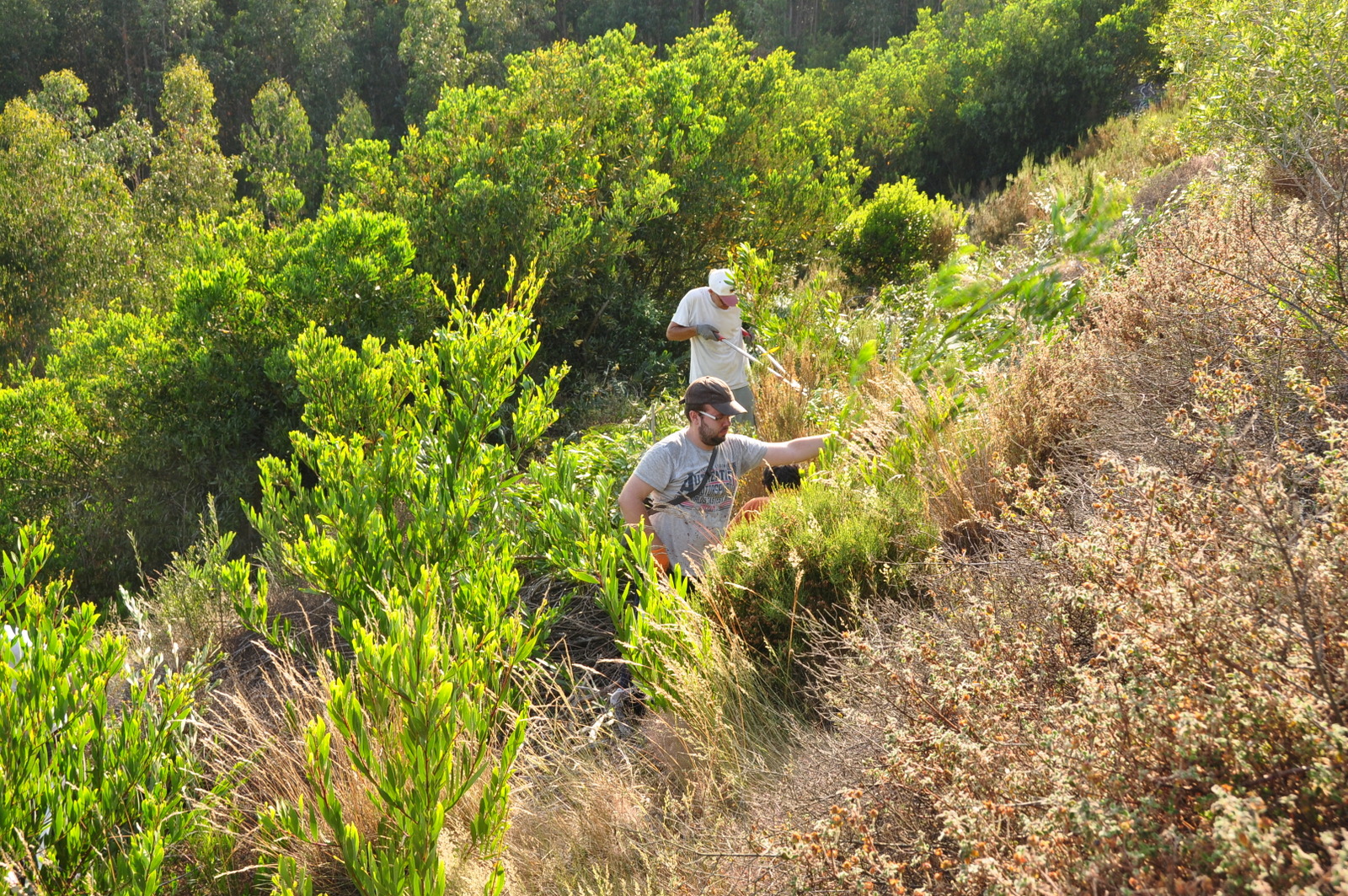 Foi um bom trabalho mas entretanto alguns voluntários tinham que ir embora e os restantes estavam suados e cansados! Optou-se por visitar algumas áreas de próxima intervenção ao longo do vale de São Francisco e depois subiu-se ainda mais para apreciar a paisagem e observar cravinas-bravas, que agora estavam em flor.
