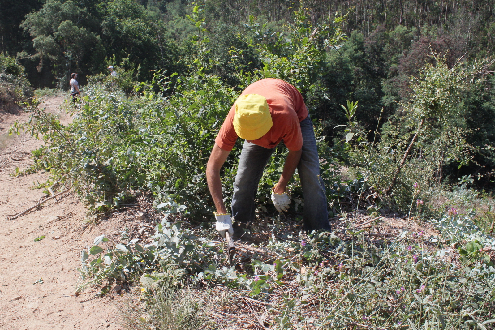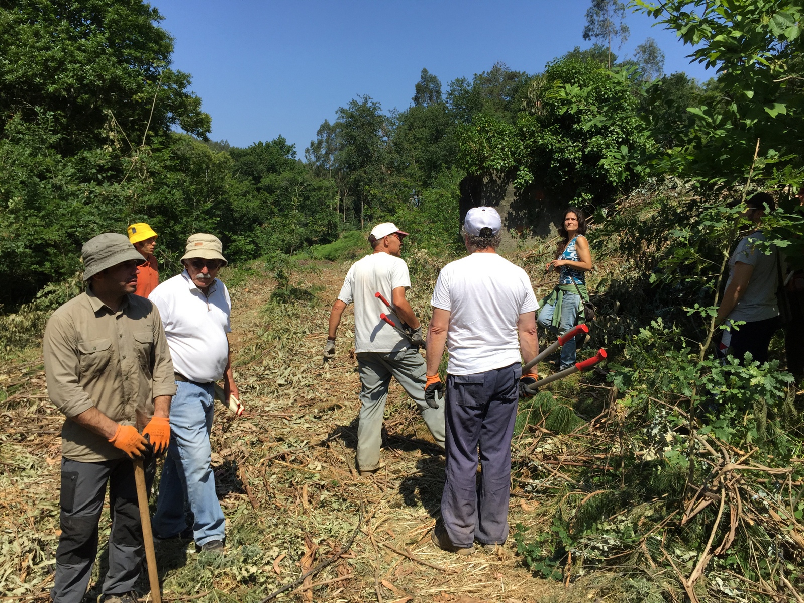 O dia previa-se quente e seco, como sempre acontece quando o anti-ciclone dos Açores vai de passeio pelo norte da Europa, pelo que o ideal era começar bem cedo. Mas como tínhamos voluntários vindos desde Coimbra até ao Porto, não foi bem assim que aconteceu… Mas foi bom porque nesta jornada se reuniram pessoas ligadas a mais dois grupos com objectivos afins e que desta forma buscam sinergias e se animam mutuamente: o Movimento Terra Queimada, que intervém sobretudo na Serra da Freita na recuperação de áreas degradadas pelo fogo e pela desflorestação, além de promover acções de vigilância florestal durante o Verão, e a Montis, associação recente que por via de uma acção de angariação de fundos bem sucedida, conseguiu adquirir vários terrenos na Serra do Caramulo e assume a gestão de várias dezenas de hectares com propósitos de conservação.
