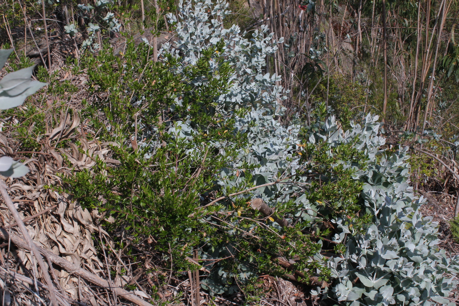 E feito o levantamento do estado de espírito é tempo de falar dos trabalhos, que começaram por ser de corte de rebentação de eucaliptos num terreno lavrado em socalcos há 9 anos, e que agora será reconvertido. A maior parte da rebentação, pelo menos aquela onde não podem ir máquinas, deverá ser controlada com o glifosato, um recurso muito pouco poético, mas aqui temos de admitir a nossa impotência para fazer melhor. Como neste local já existem outras árvores, carvalhos, medronheiros e loureiros, que não queremos perder com a pulverização, levou-se a cabo esta operação, a repetir tantas vezes quantas forem necessárias…