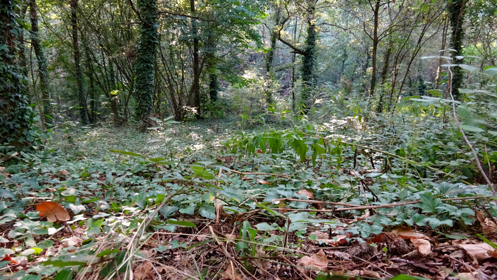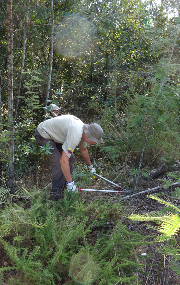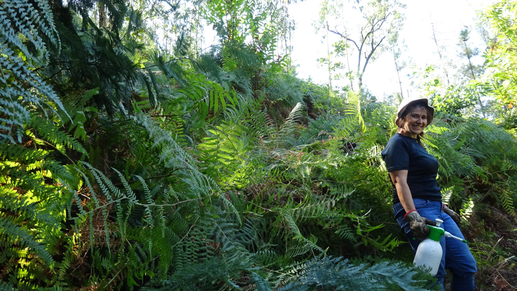 A somar à inclinação, a área mais antiga tinha fetos enormes e ainda silvas (mas também carvalhos, castanheiros e loureiros), o que não facilitava nada o acesso. Mas, com tesourões, machados e uma podadora, o trabalho foi avançando com algumas arranhadelas. Tal foi a concentração que, já a manhã estava quase no fim, ainda ninguém tinha tirado uma foto! Lá se tirou uma numa pequena pausa, para memória futura.