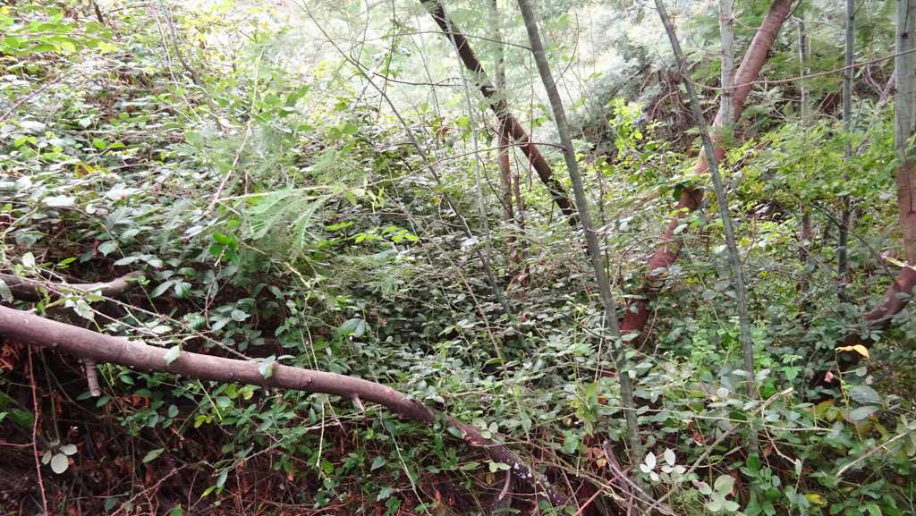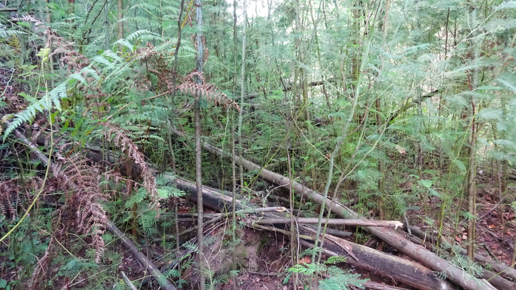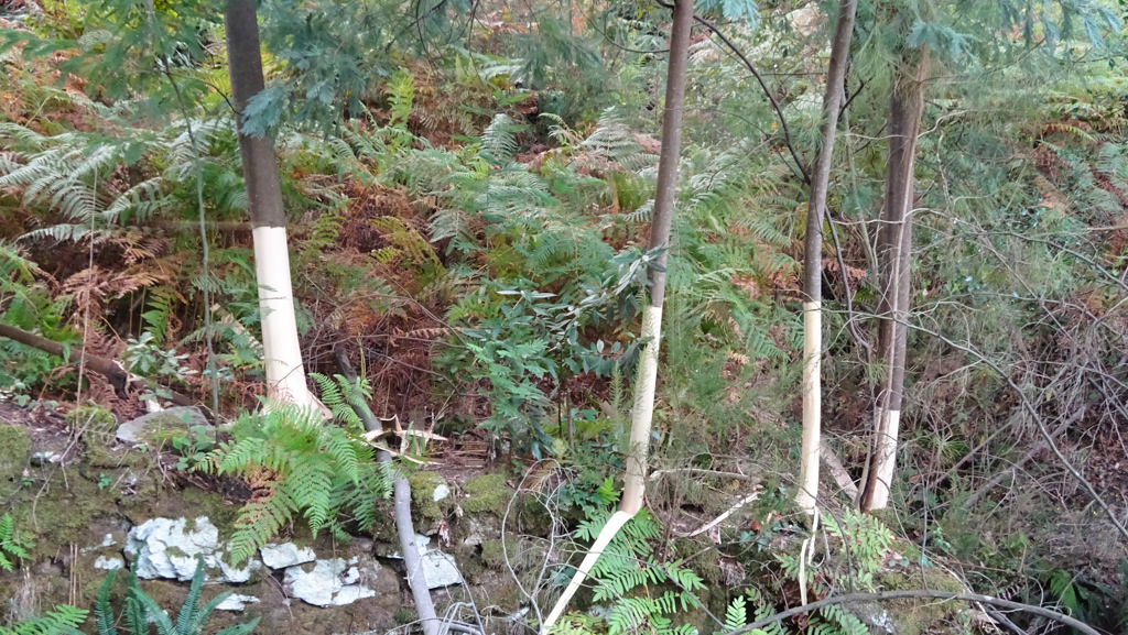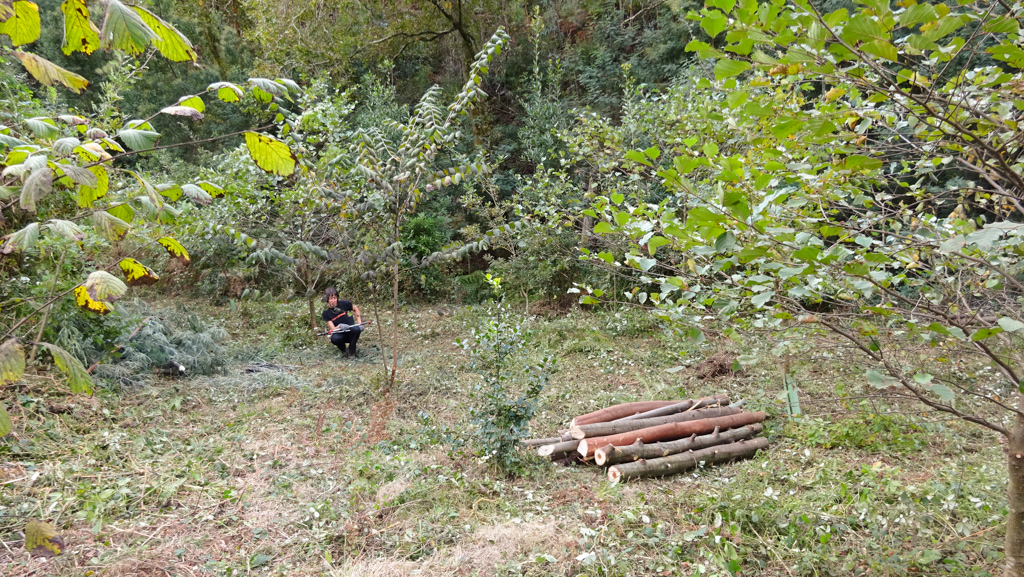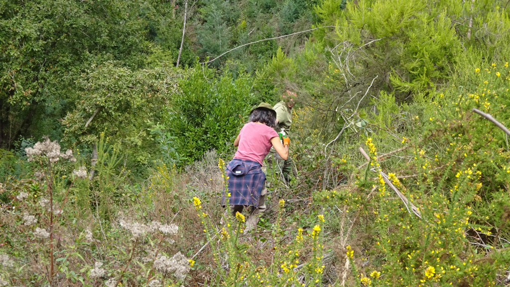 Aqui se trabalhou de manhã, e embora estivesse presente a ideia de se passar à margem sul à tarde, assim não aconteceu: optou-se por deixar um trabalho mais completo na margem norte, e só mesmo na hora final da jornada se “inauguraram” os trabalhos na margem sul, mas mais como “pontapé de saída” para uma futura jornada. Aqui, embora o acesso seja mais difícil do que à margem norte, a existência de antigos socalcos agrícolas ao longo de quase toda a extensão a trabalhar facilita a progressão no terreno. Pelo lado negativo há imensas árvores tombadas, que é necessário cortar com motosserra e arrumar para se conseguir avançar. E claro, há a inclinada encosta adjacente, mas isso é outro desafio!