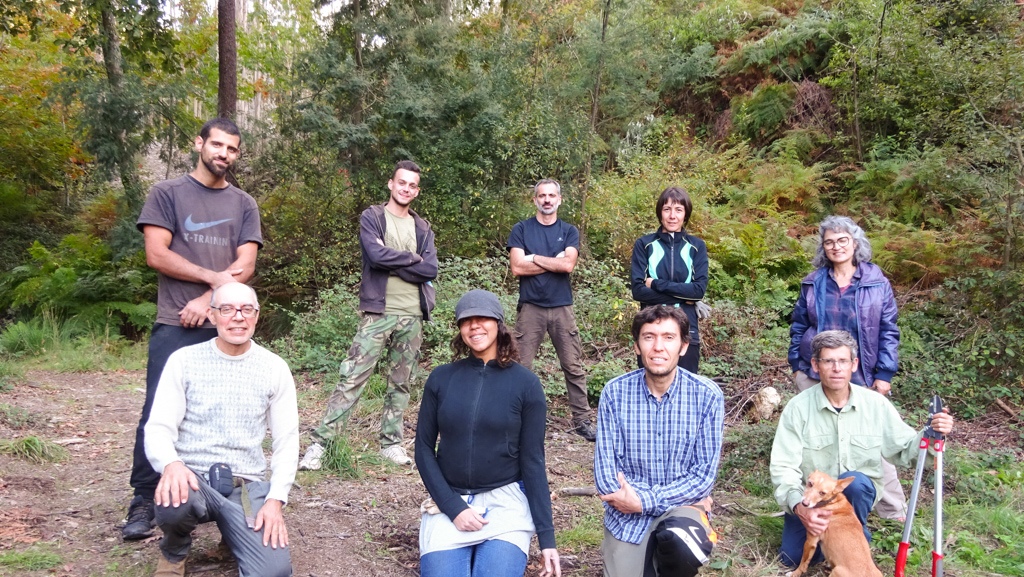 Foi assim, num panorama ainda desolador, mas já com sinais de recuperação, que se desenvolveu esta jornada. Os sinais de recuperação mais evidentes estão, é claro na várzea da Chousa e na pequena várzea a montante, esta onde as plantas de origem seminal e também as plantadas acabaram de resistir à primeira provação: o seu primeiro Verão. Mas também na zona intermédia, entre mimosas a rebentar e a germinar, entre a confusão das ramadas secas e o cerco do silvado, se encontram carvalhos a surgir, sobretudo de provável origem seminal, mesmo ninguém se tendo lembrado de as semear aqui! Por isso o progresso dos trabalhos se faz aqui com mil cuidados, para não afectar esses primeiros sinais de renascimento.