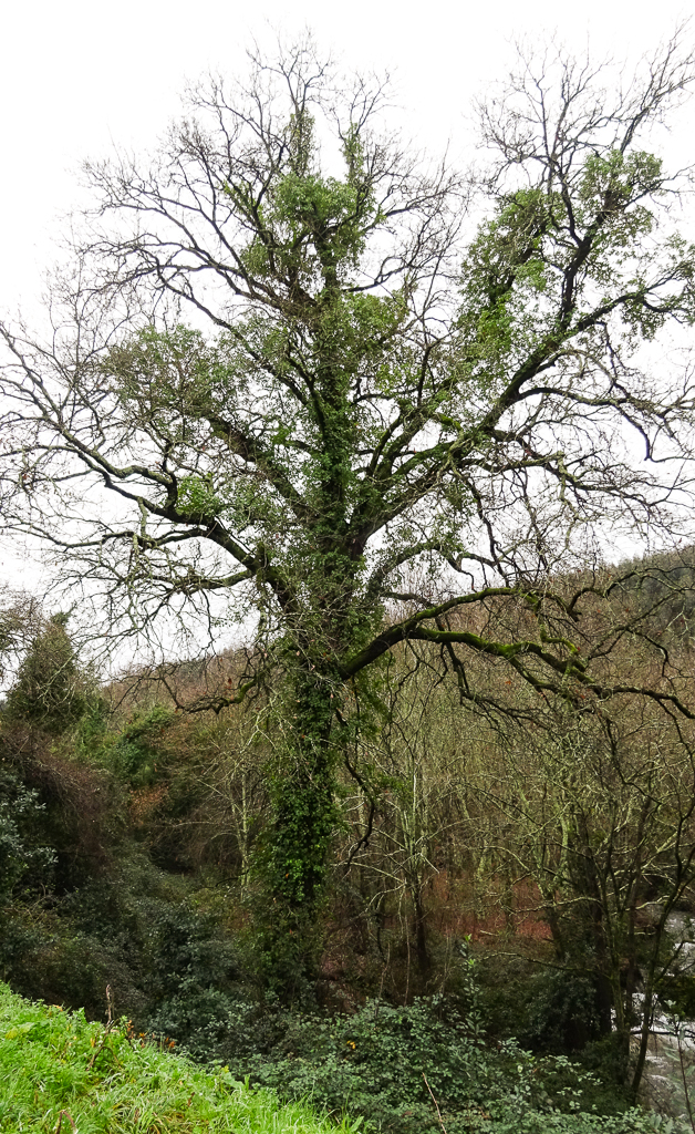 Ao longo de Janeiro, os carvalhos foram perdendo as últimas folhas e, já no seu final, o que se destacava eram as heras, como aqui no grande carvalho do Pedregal: