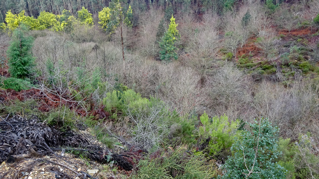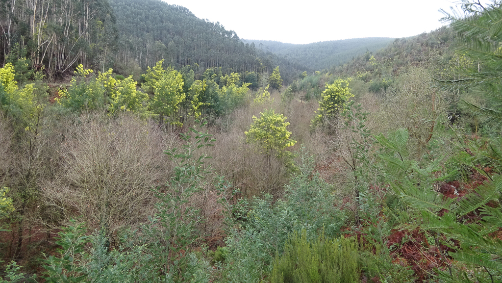 Claro, difícil é não dar pelas mimosas, que se destacam, “orgulhosas”, entre as árvores autóctones ainda completamente “adormecidas”. Mas não dramatizemos: pelo menos aqui, entre o Cambedo e a Ribeira do Tojo, as coisas já melhoraram muitíssimo no que toca à presença de invasoras.