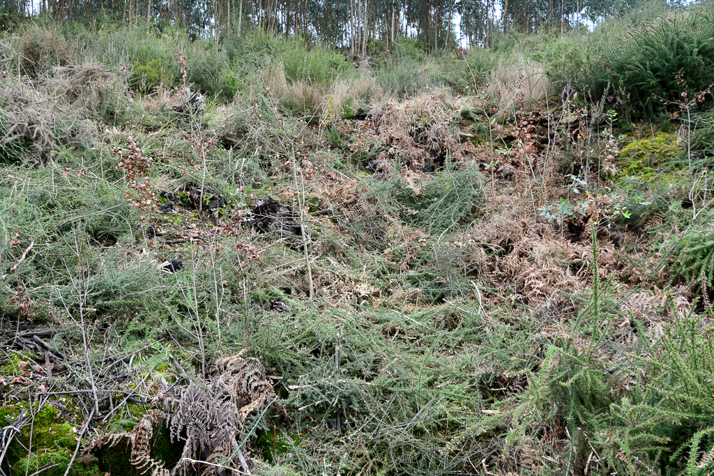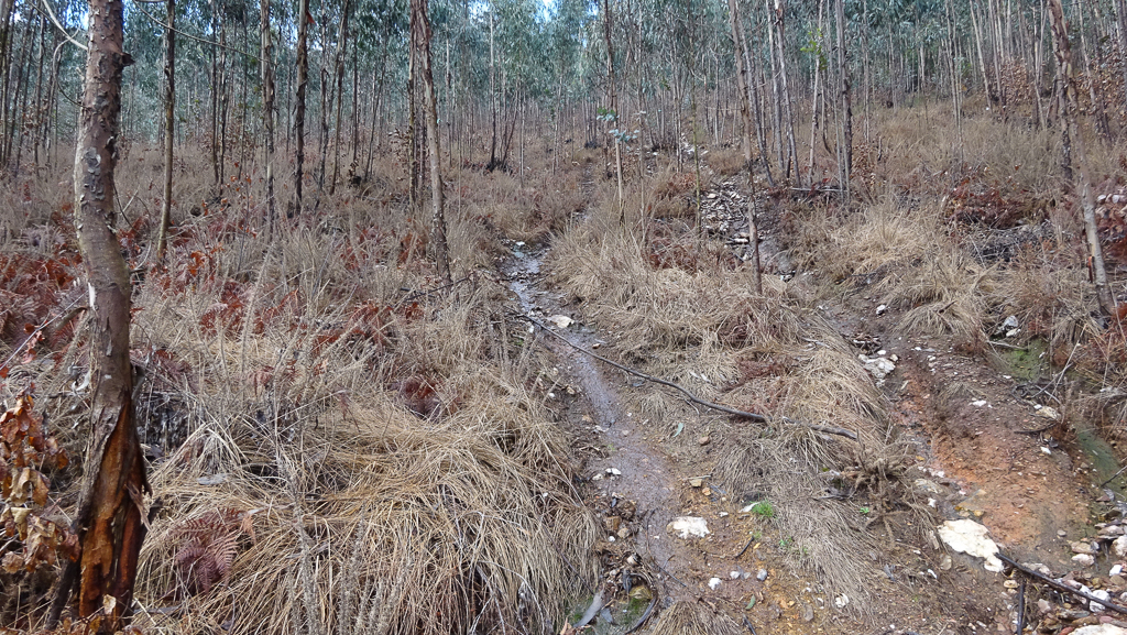 Cada vez mais preocupante (ou assustadora) é a frequência com que se constata a aplicação de herbicida nos eucaliptais, uma prática que tem tido um crescimento exponencial ao longo dos últimos anos. Neste caso, à aplicação do herbicida sobre o matagal adiciona-se a desestabilização do solo pela passagem repetida de motos. E assim se prossegue alegremente em direcção a um futuro sombrio…