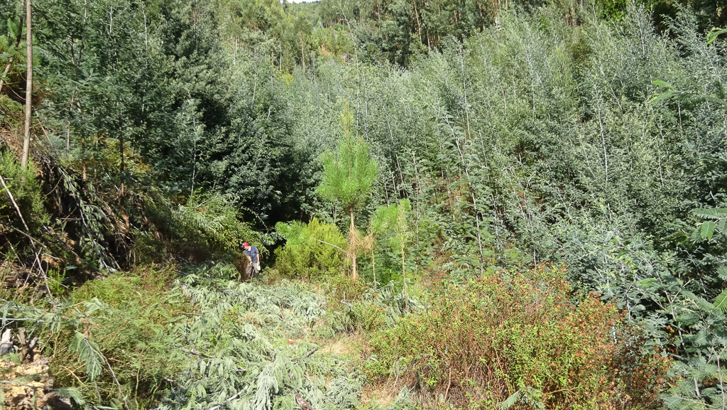 A última jornada voluntária do Verão, decorrida a 18 de Setembro, foi participada por apenas 3 voluntários. A área alvo dos trabalhos foi o Vale de São Francisco, junto à aldeia do Feridouro, onde as mimosas insistem em permanecer, não obstante os vários trabalhos já ali realizados no passado. Aliás, não apenas permanecer, mas crescer vertiginosamente, sobretudo nos solos frescos do coração do vale.