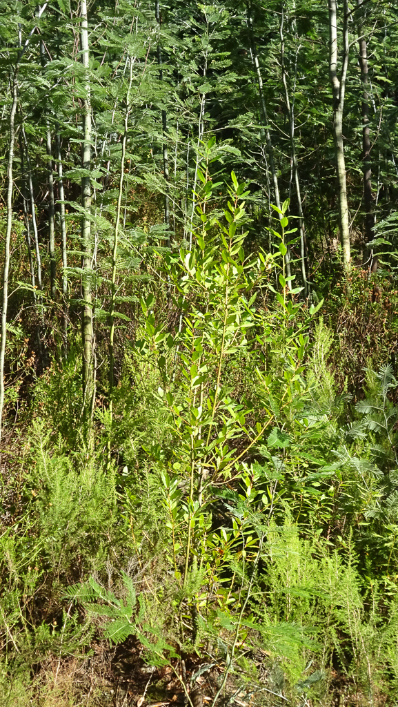 Embora a presença das mimosas fosse opressiva, um olhar optimista de quem acompanhou a evolução desta área desde os primeiros trabalhos há uns 6 anos permitia concluir que a densidade de mimosas não é agora tão elevada como no início, e que o que aqui terá faltado terá sido um acompanhamento mais atempado da situação, pois já sabemos que qualquer operação de remoção de mimosas tem que ter continuidade. Nesta área, os declives elevados não facilitam esse acompanhamento, ainda que nos socalcos, não obstante o elevado impacto que teve a sua criação, seja mais fácil trabalhar.