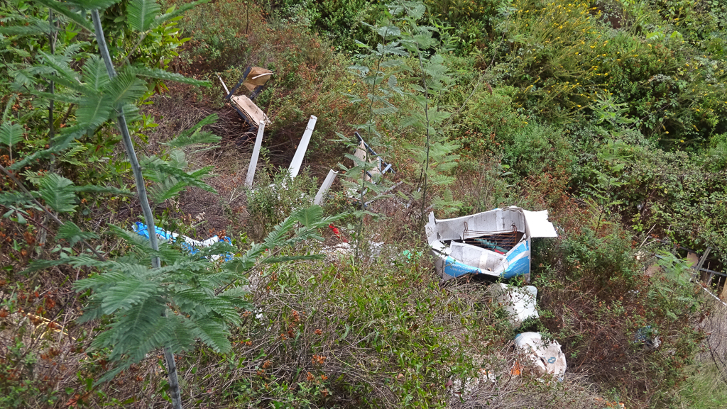 No primeiro fim-de-semana de Outubro tivemos um encontro de sobre recuperação da floresta nativa, participado por pessoas activas no assunto em vários pontos do país. Fizeram-se observações em campo e discutiram-se em sala os desafios e as soluções. Foi também durante esta visita que se constatou o depósito de lixo de grandes dimensões (cadeiras, mesas,…) numa encosta inclinada de um dos mais frequentados locais do trabalho voluntário: a zona do Chão do Linho, perto da ponte de madeira sobre o ribeiro. Uma inacreditável falta de consideração e respeito pela Terra e também pelo trabalho de todos quantos têm contribuído para que este local se torne vivo e vibrante.