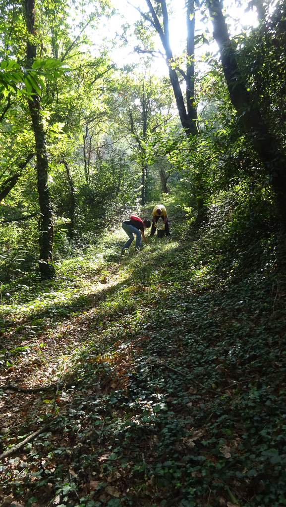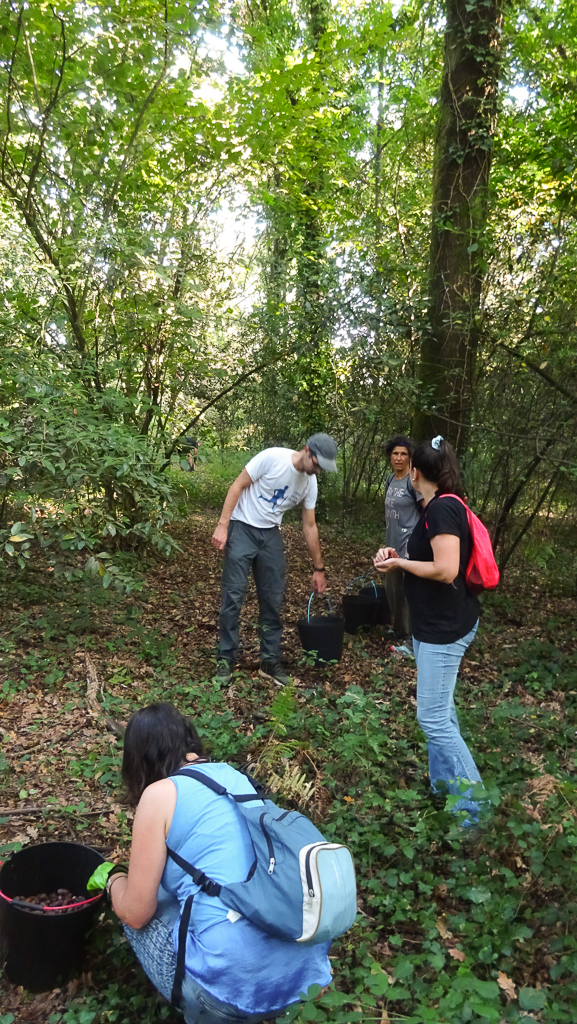 Iniciou-se com um percurso pelos mais formosos carvalhos da Quinta das Tílias, que se prolongou por toda a manhã. Embora na Primavera parecesse que este ano iria ser de excepcional produção de bolota, constatou-se que não foi assim, pelo menos em todas as árvores, pois embora algumas apresentassem boas produções, outras nem tanto. Ainda assim, houve bolota para colher durante toda a manhã.