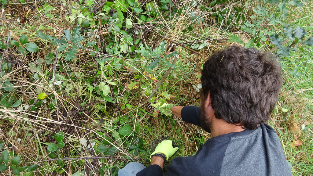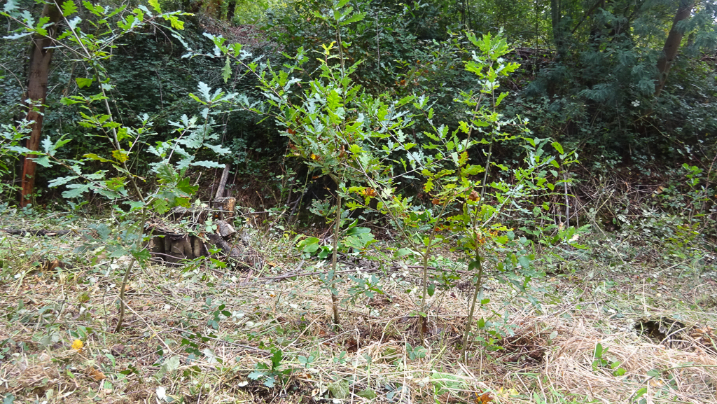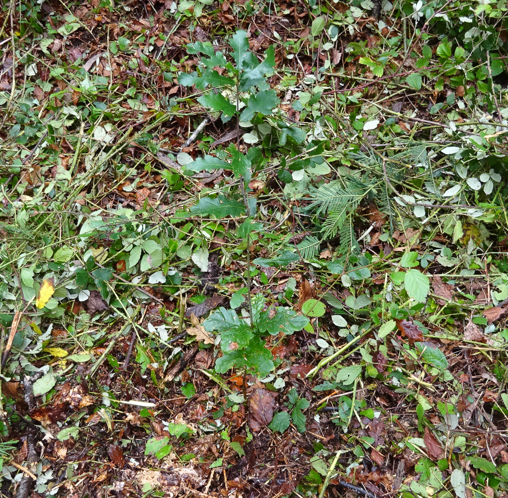 Mas, não se fez apenas sementeira: deram-se cuidados à área semeada nessa bolotada inicial de 2019, aquela mesmo que foi mostrada num canal de televisão! Deste modo, foram cuidados que foram também um balanço dessa bolotada. Bem, nós já tínhamos uma ideia do resultado, porque, evidentemente, já lá tínhamos ido, mas os cuidados prestados permitiram ter uma ideia mais clara desse resultado. Cortadas as manchas de silvado, libertadas as árvores desse “abraço” às vezes pouco amigável e retirada alguma vegetação concorrente mais agressiva, as árvores ficaram bem à vista, e não há dúvida que o balanço é positivo, em parte devido à grande densidade de bolotas que um local como este, uma várzea de fácil acesso, recebeu!